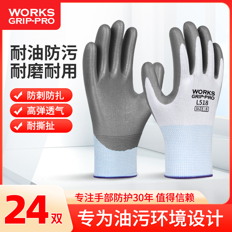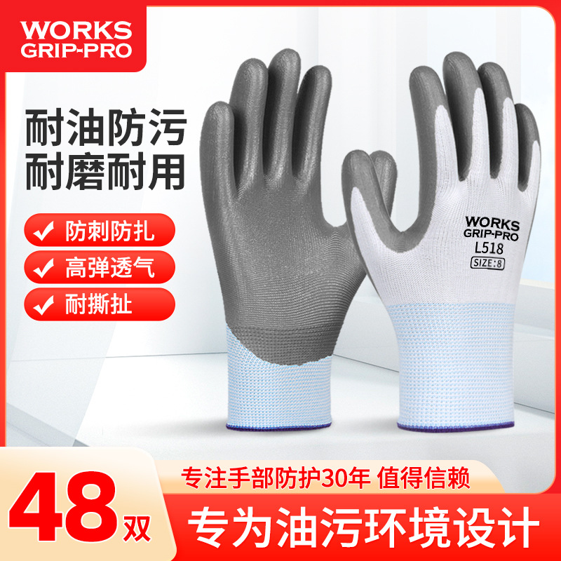 니트릴 코팅 장갑, 내마모성, 내유성, 방수, 통기성, 건설 현장 작업용 미끄럼 방지 보호 장갑