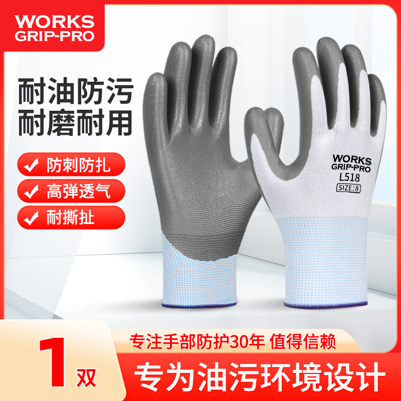 니트릴 코팅 장갑, 내마모성, 내유성, 방수, 통기성, 건설 현장 작업용 미끄럼 방지 보호 장갑스토어 가기