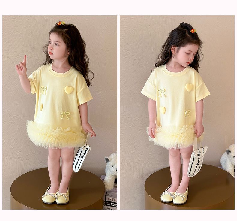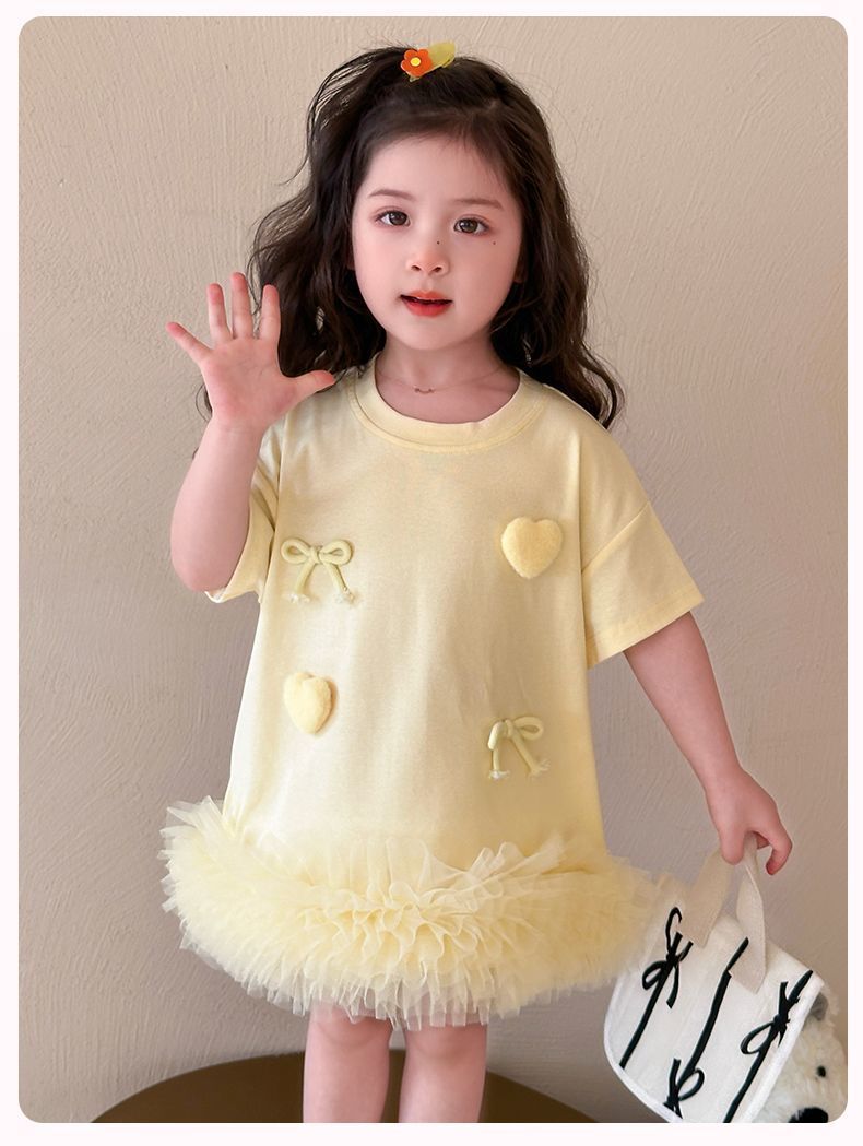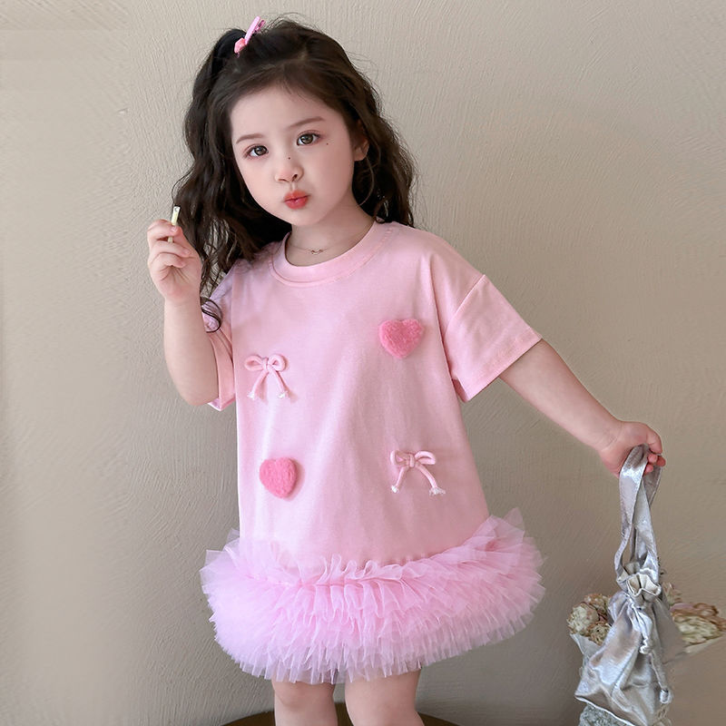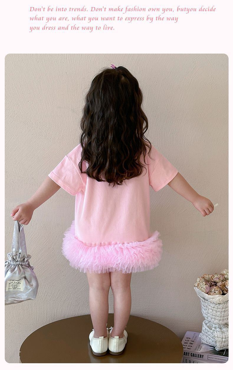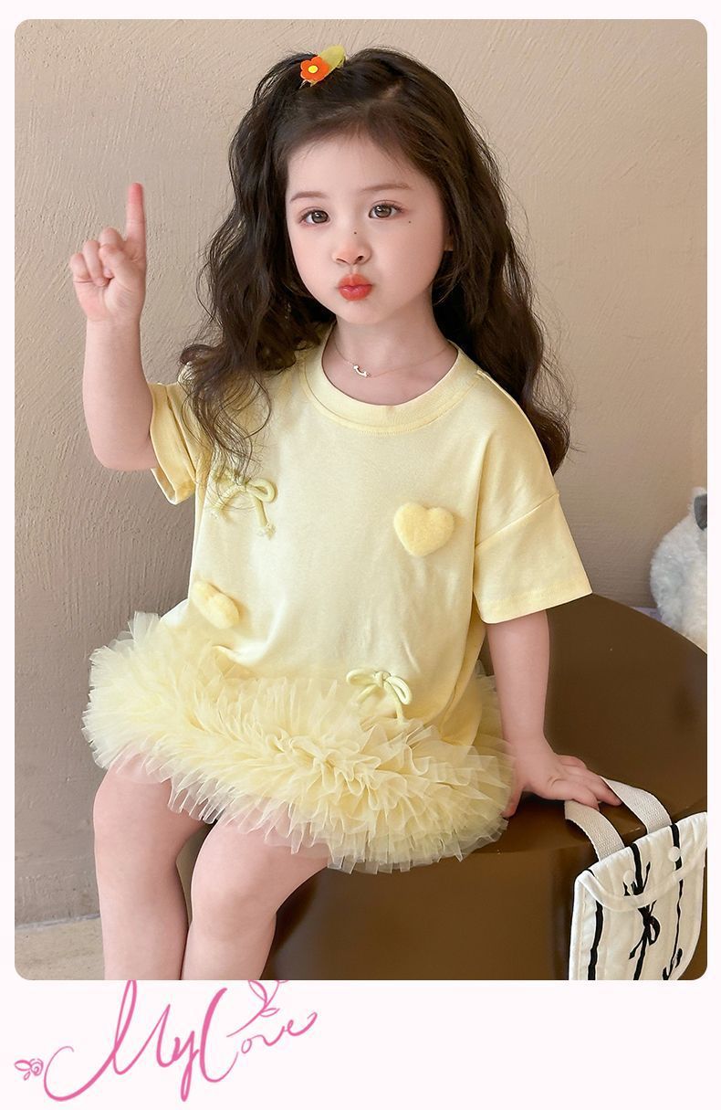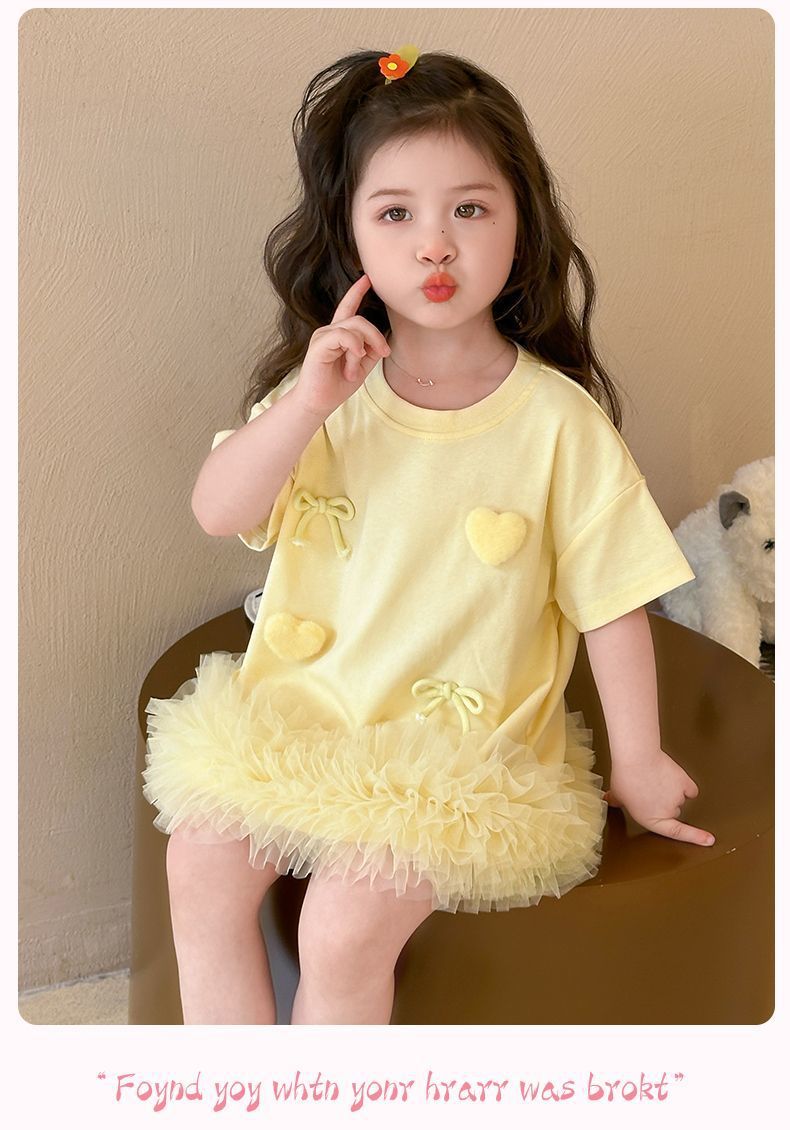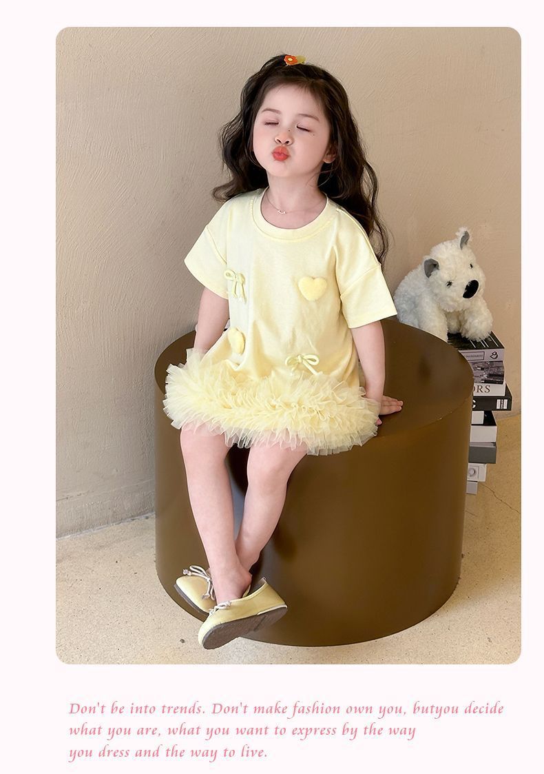 소녀 아기의 한국식 단색 메쉬 원피스 세련된 세련된 사랑 활 반팔 공주 원피스스토어 가기