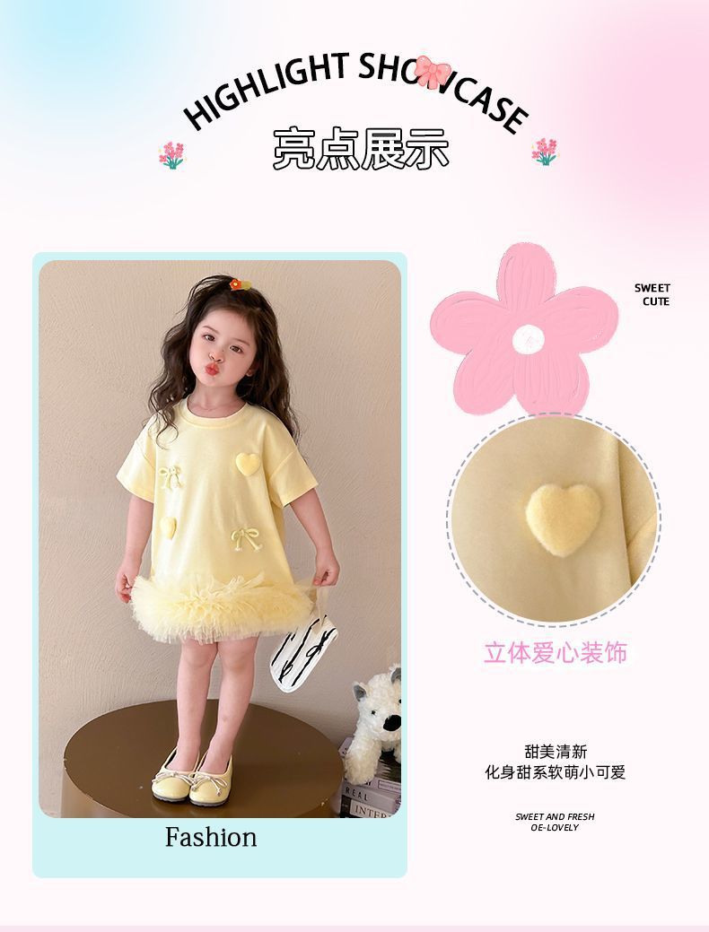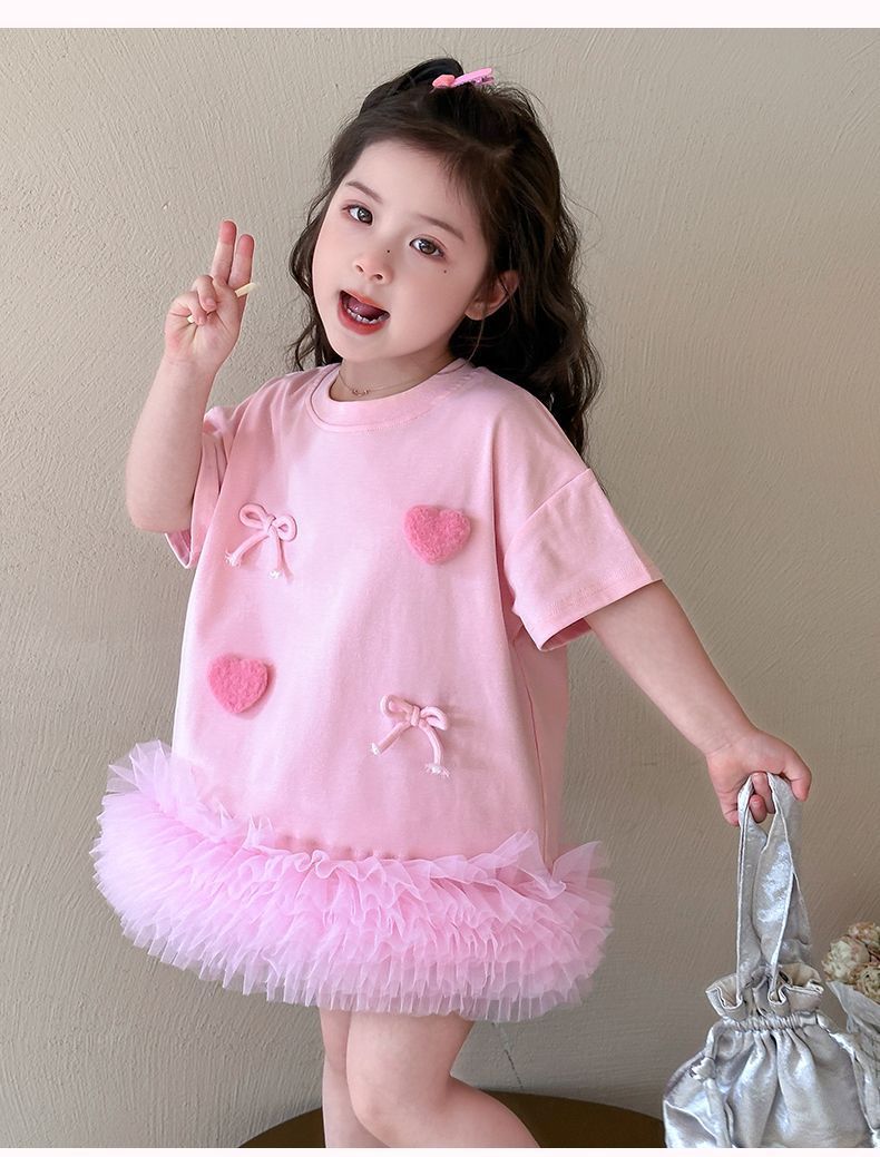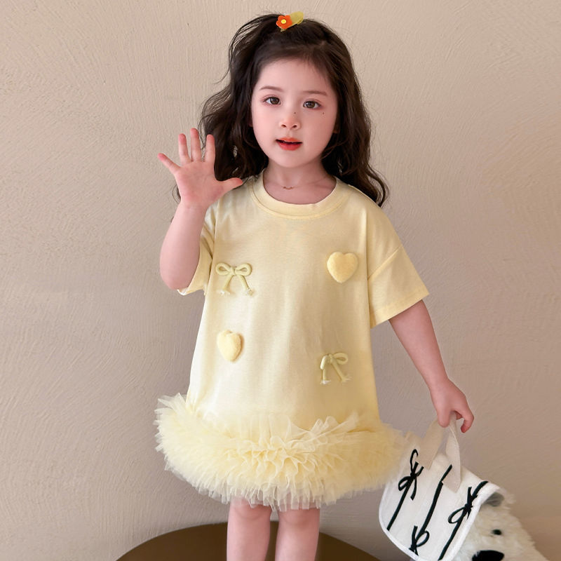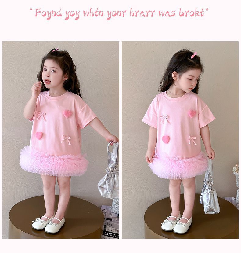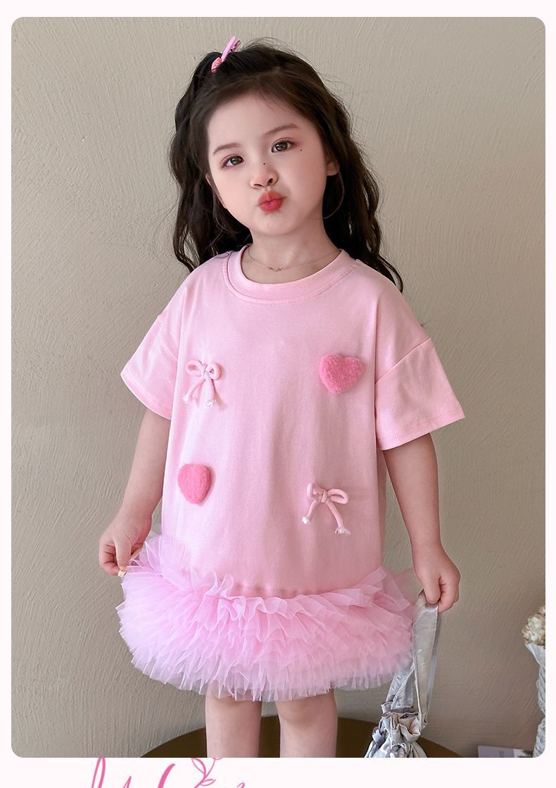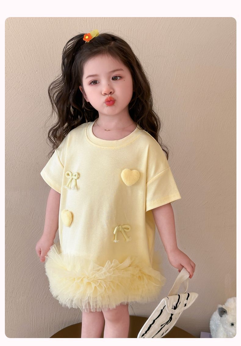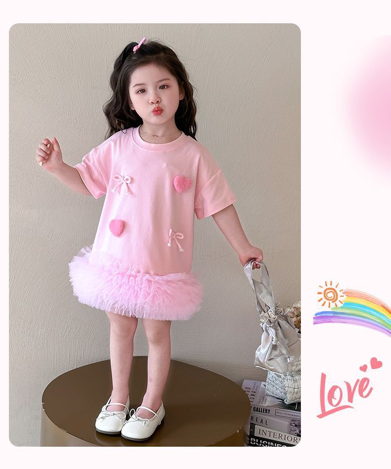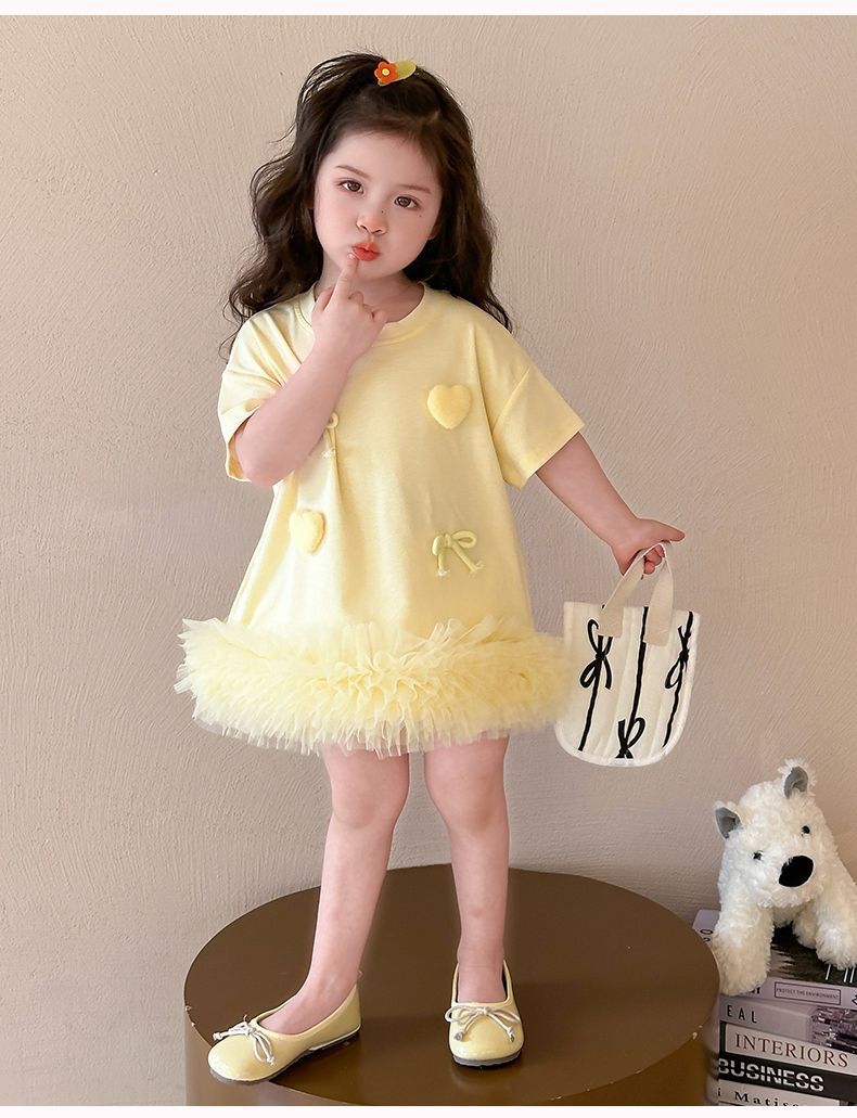 소녀 아기의 한국식 단색 메쉬 원피스 세련된 세련된 사랑 활 반팔 공주 원피스스토어 가기