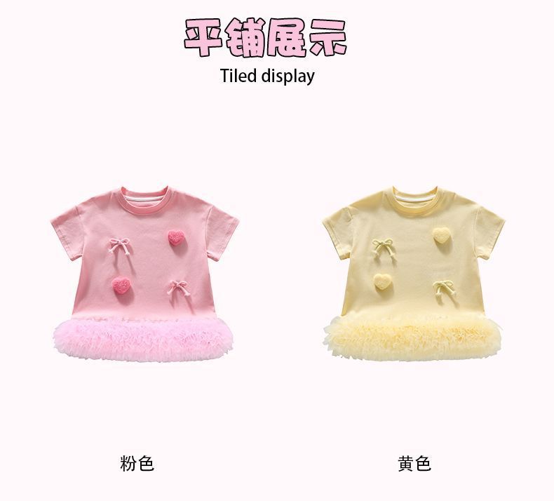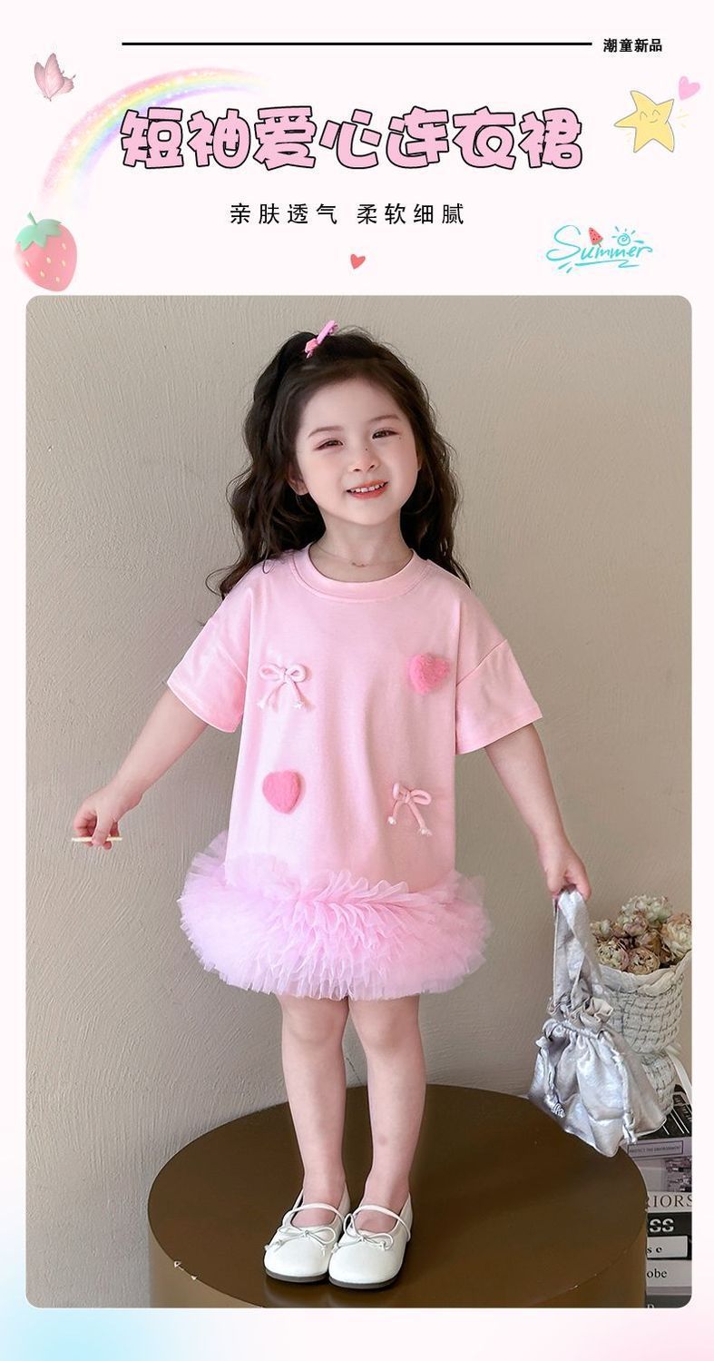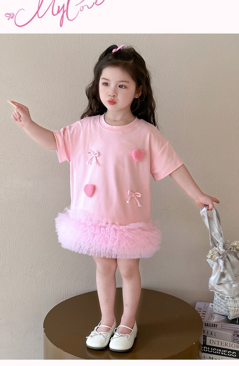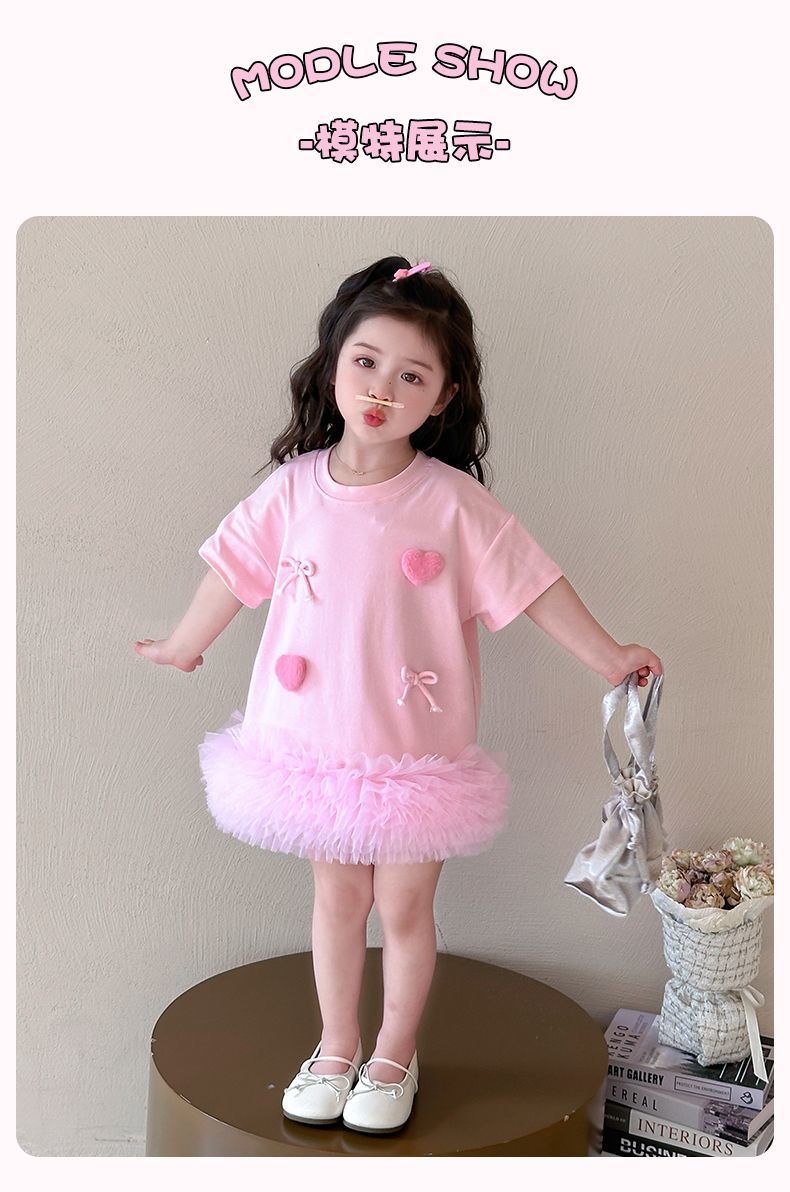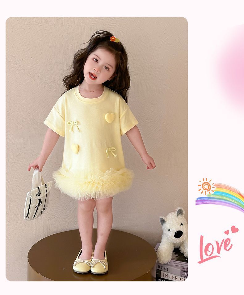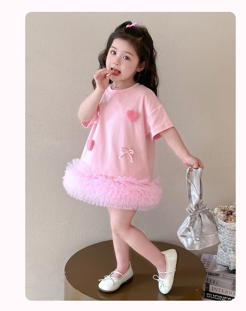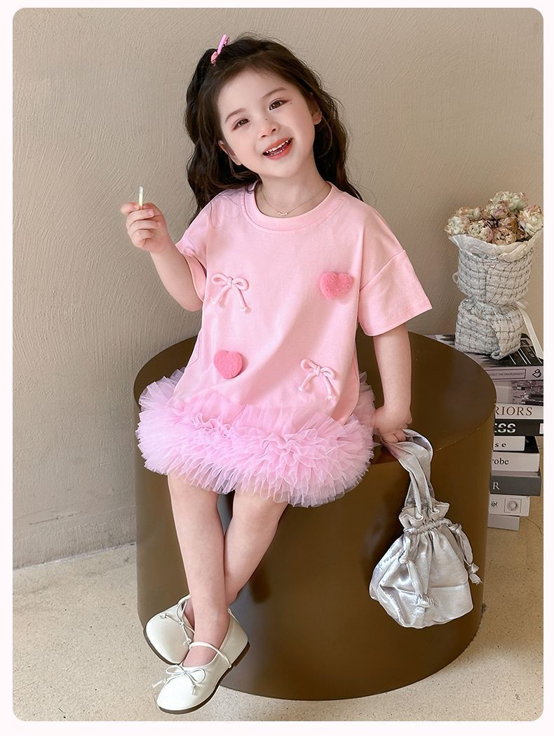 소녀 아기의 한국식 단색 메쉬 원피스 세련된 세련된 사랑 활 반팔 공주 원피스스토어 가기