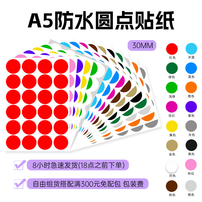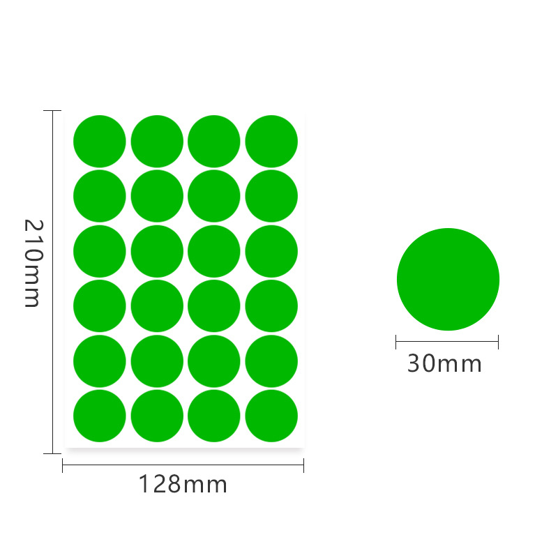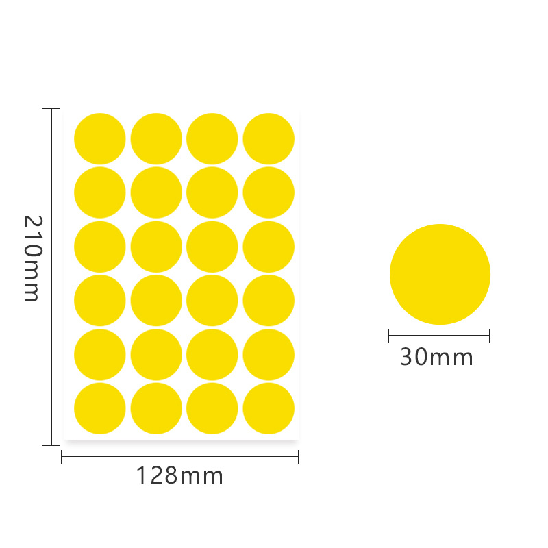 A5 컬러 도트 30mm 라벨 PVC 방수 필기 빈 색상 창고 분류 라운드 비닐 스티커