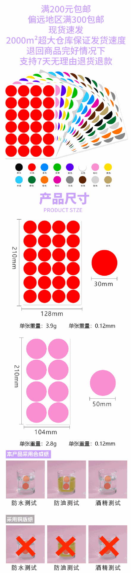 A5 컬러 도트 30mm 라벨 PVC 방수 필기 빈 색상 창고 분류 라운드 비닐 스티커스토어 가기
