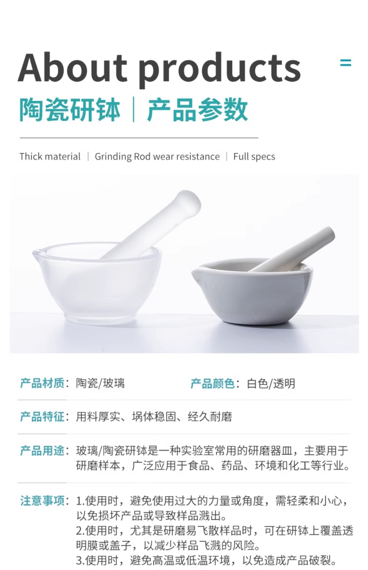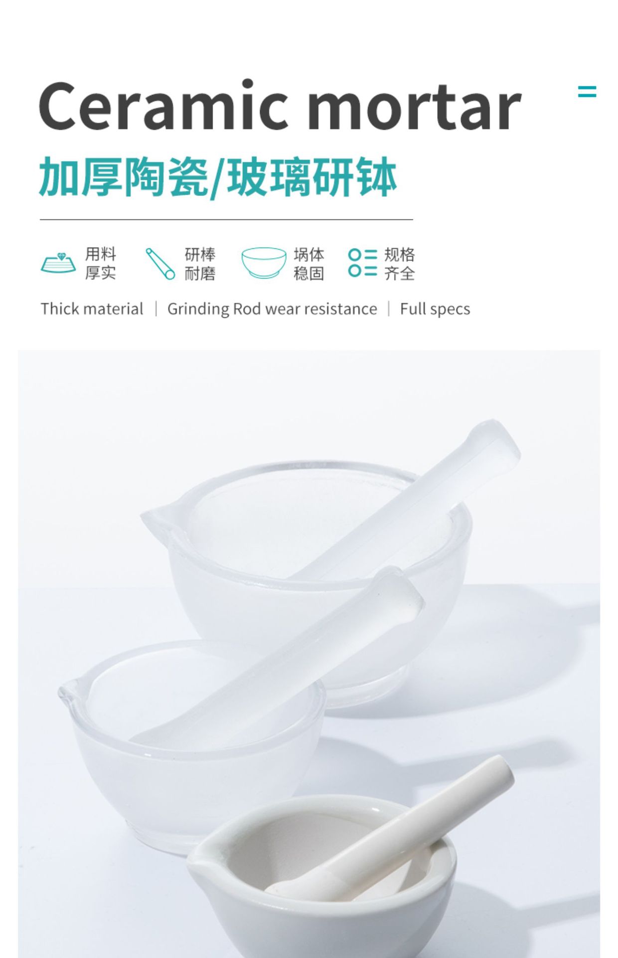 Labshark 세라믹 박격포 실험실 연삭 그릇 학교 가정용 박격포 스틱 연삭 그릇 유리 마노 박격포
