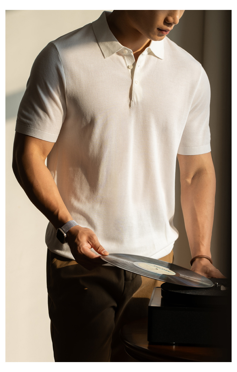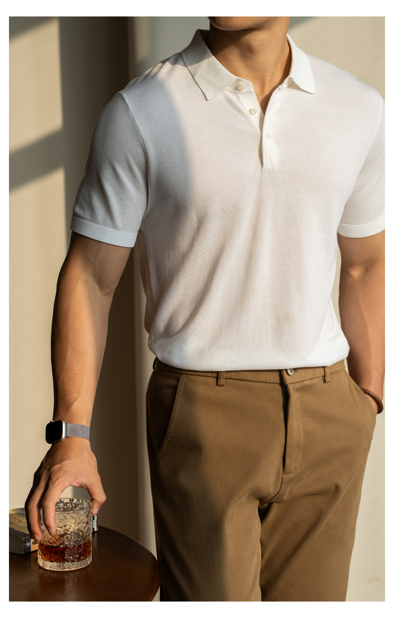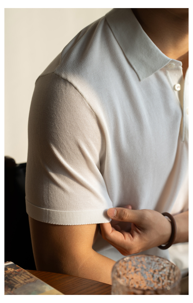 Lyocell Mulberry Silk Lel 반팔 POLO 셔츠 남자 2025 년 여름 새로운 구슬 니트 통기성 티셔츠 탑