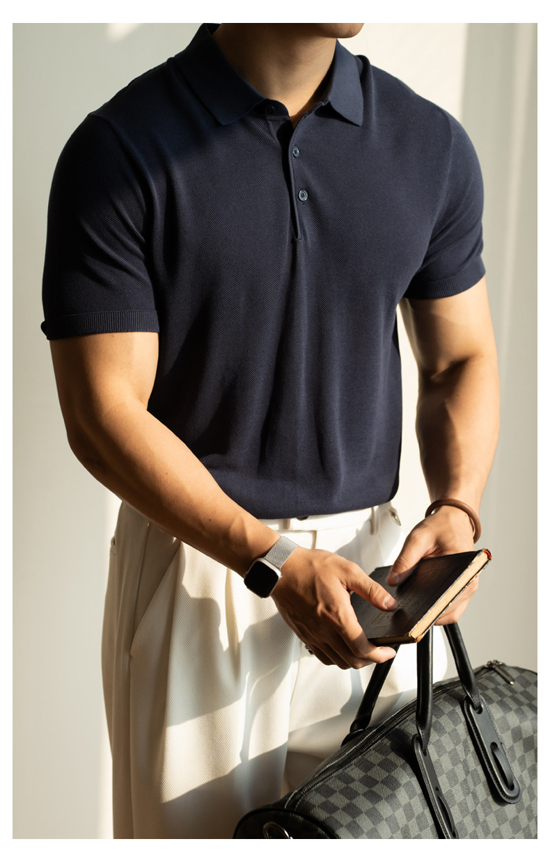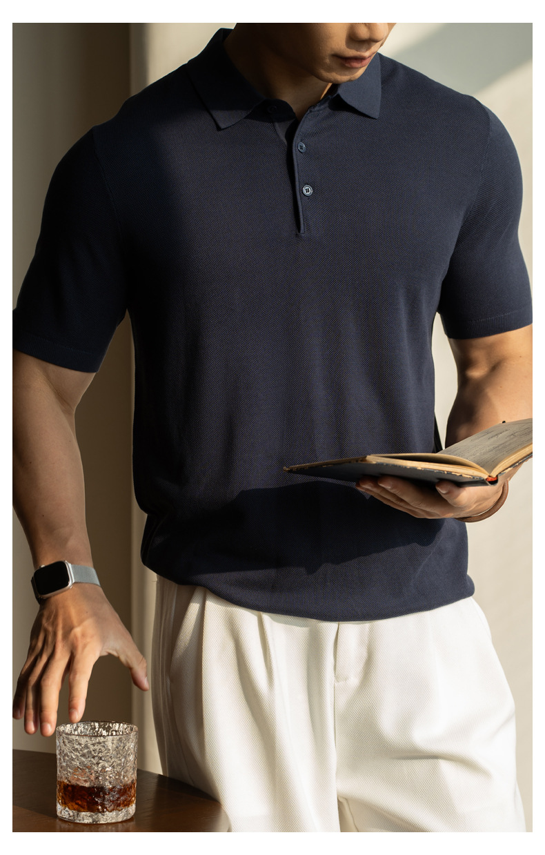 Lyocell Mulberry Silk Lel 반팔 POLO 셔츠 남자 2025 년 여름 새로운 구슬 니트 통기성 티셔츠 탑스토어 가기