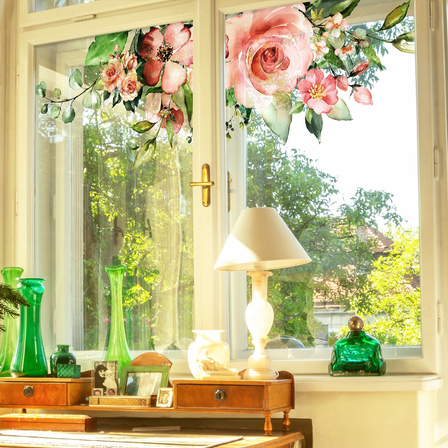 Funlife Amazon 베스트셀러 다양한 봄 수채화 접착제가 없는 정전기 창 스티커 홈 장식 유리 필름 SE