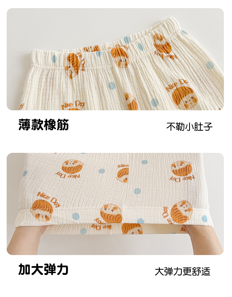 어린이 세트 여름 새로운 캐주얼 소년과 소녀 주름진 천 면화 클래스 A 5부 소매 어린이 잠옷스토어 가기