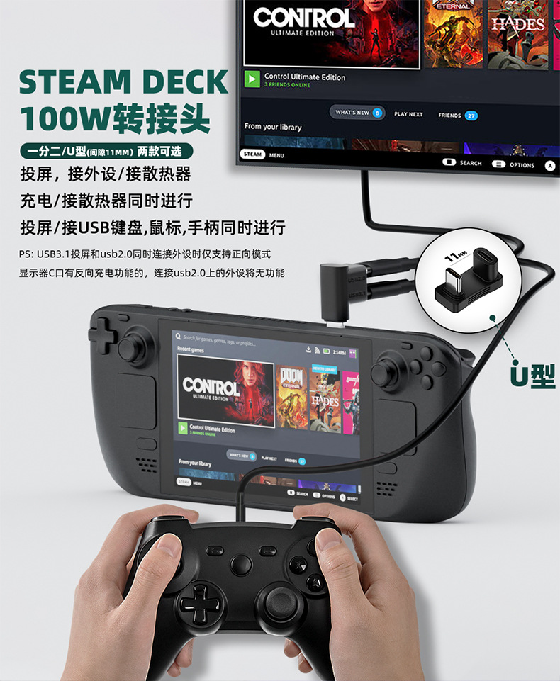 더블 TYPE-C 여성-TYPE-C 남성-2 어댑터, 화면 던지기, 빠른 충전, U 자형 확장 인터페이스스토어 가기