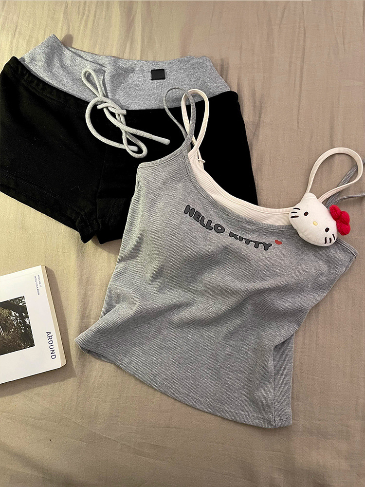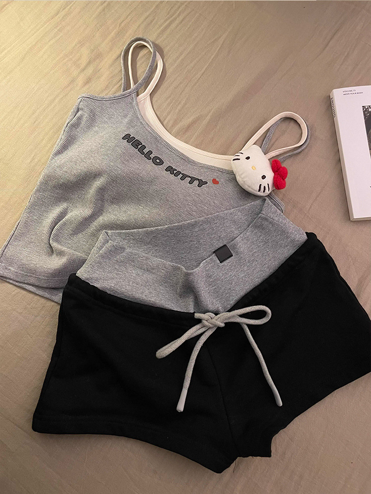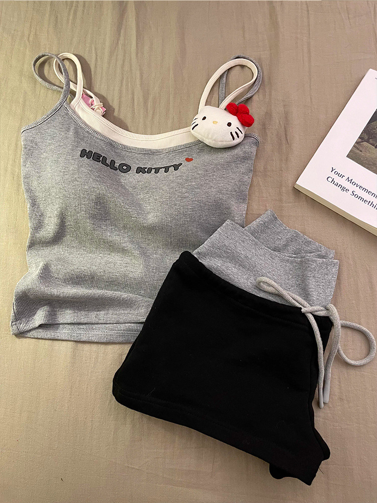 슬링 파자마 여성 2025 년 여름 새 조끼 반바지 가슴 패드와 귀여운 달콤한 소녀의 홈 의류 세트