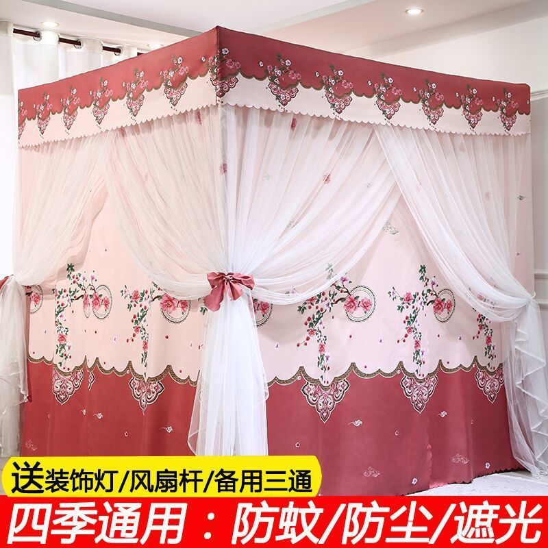 바닥부터 천장까지 닿는 암막 침대 커튼, 모기장, 일체형 침대 커튼, 기숙사 완전 밀폐형 3도어 방진 공주 소녀 스타일