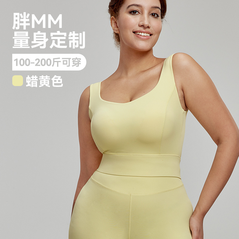 유럽과 미국의 플러스 사이즈 요가 의류 조끼는 여성 모여기식 Parammary Breast Explas 가슴 패드 아름다운 등받이 필라테스 통통녀 슬림 룩 탑스토어 가기