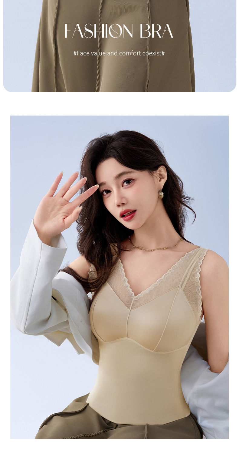섹시한 V 넥 간단한 스티칭 중공 메쉬 소프트 지원 원활한 어깨 끈 긴 슬림 핏 여성의 아름다운 등 조끼