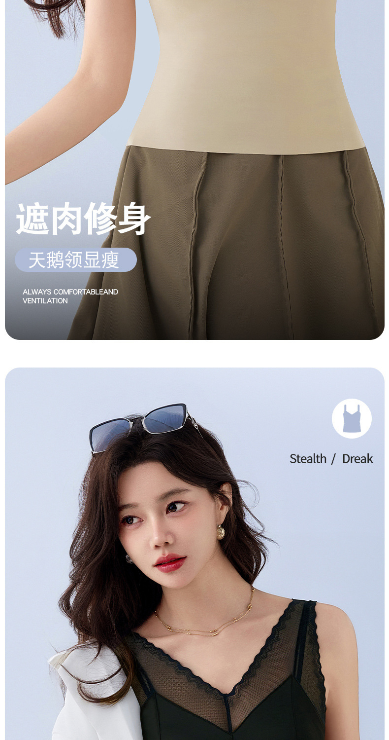 섹시한 V 넥 간단한 스티칭 중공 메쉬 소프트 지원 원활한 어깨 끈 긴 슬림 핏 여성의 아름다운 등 조끼스토어 가기