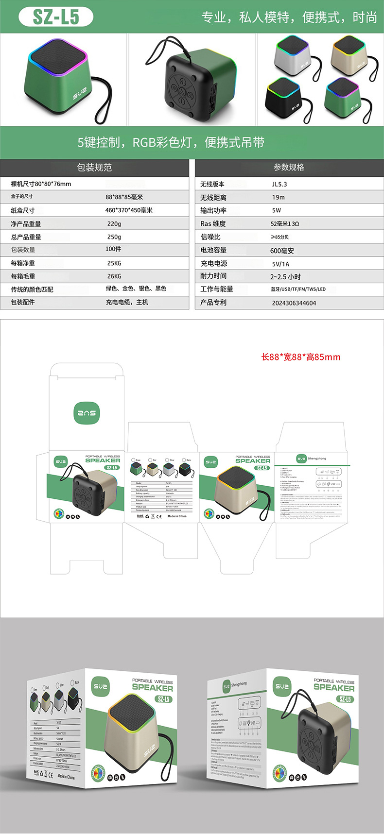 SZ-L5 미니 블루투스 스피커 야외 휴대용 자동차 서브 우퍼 홈 USB 유선 멀티미디어 대용량