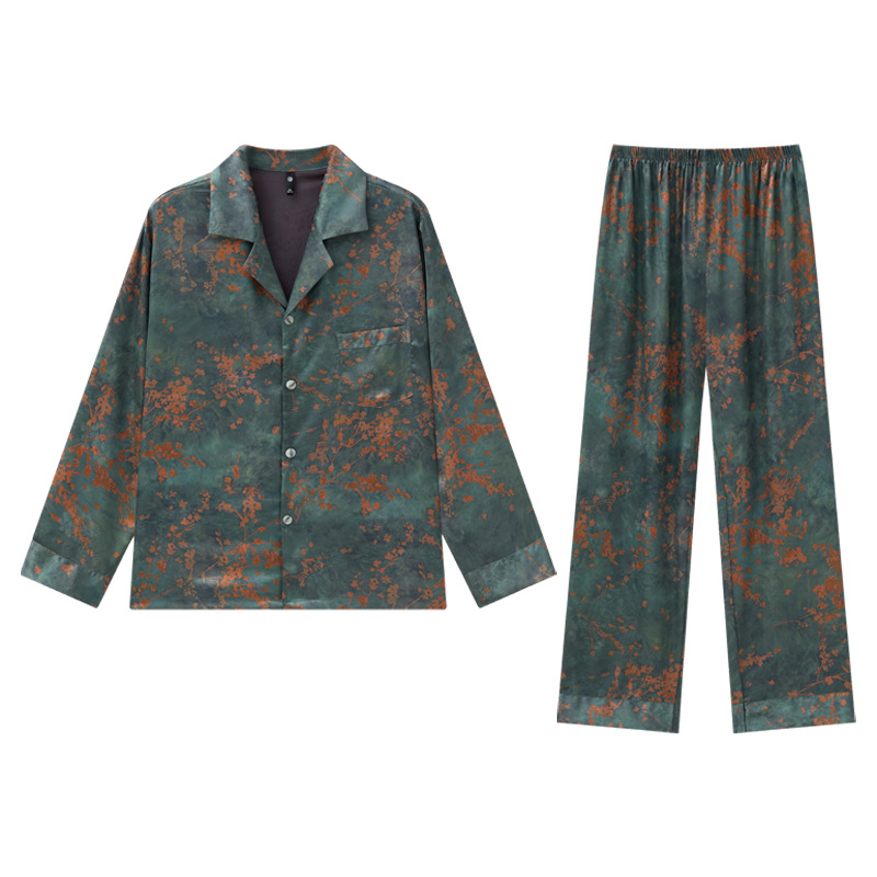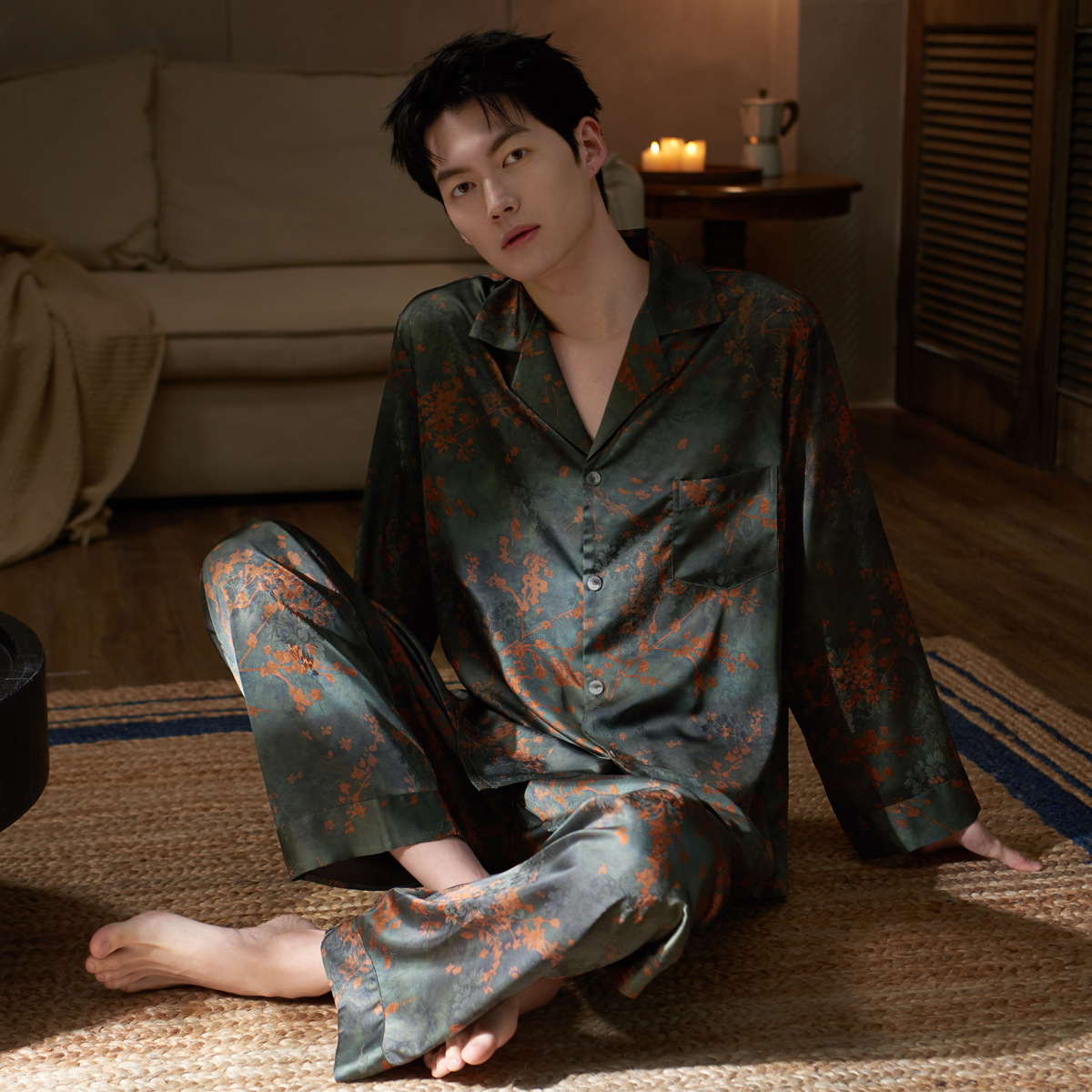 새로운 스타일 잠옷 남성 봄 여름 스타일 아이스 실크 가을 겨울 사계절 카디건 홈웨어 세트 외부 착용 가능스토어 가기