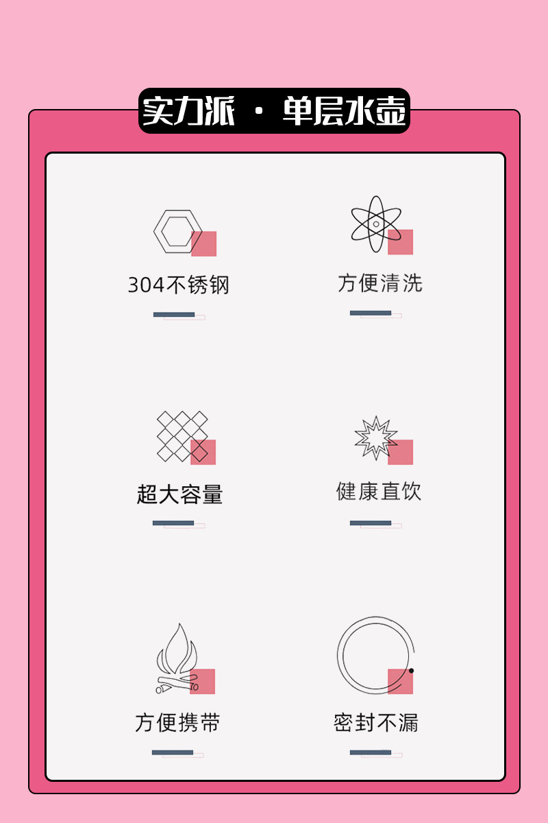 304单层不锈钢水杯子夏季户外运动水壶大容量登山车载骑行