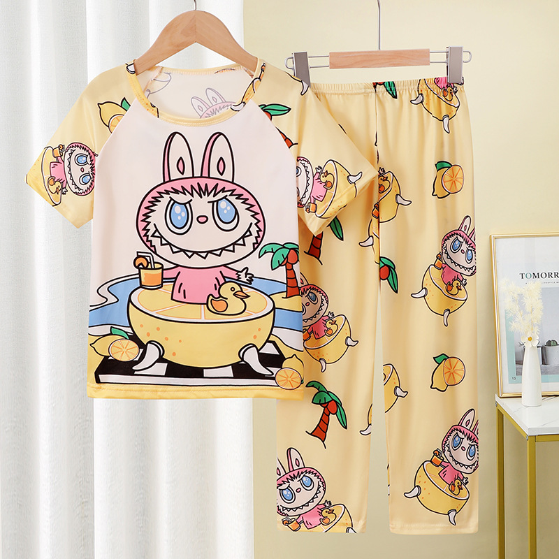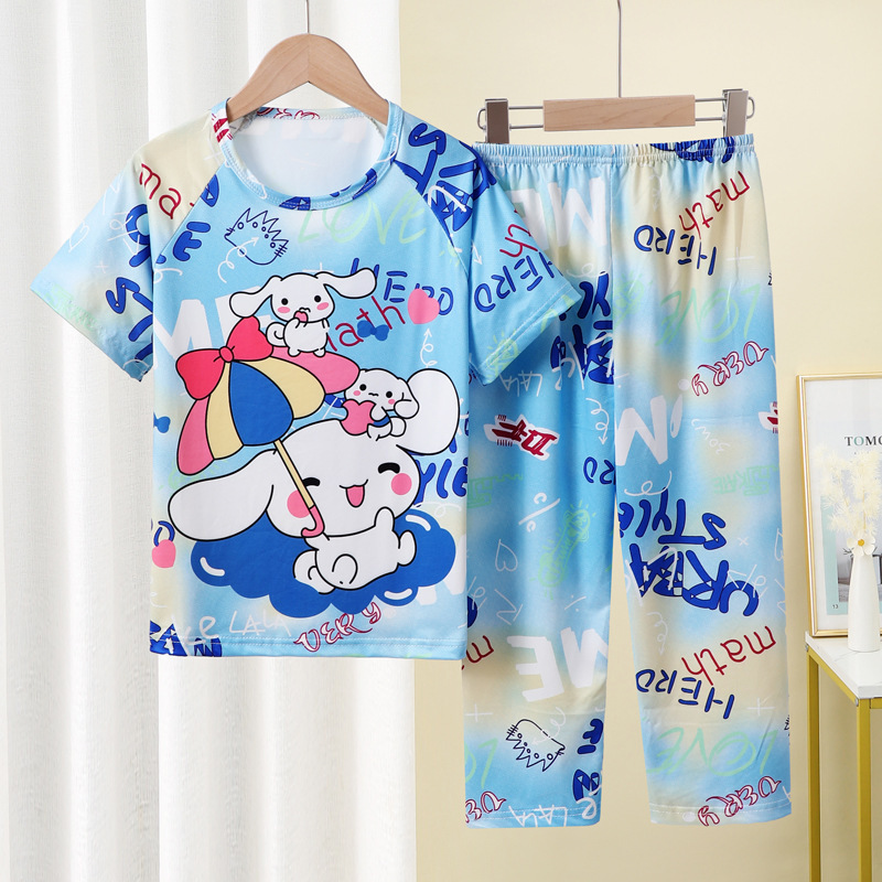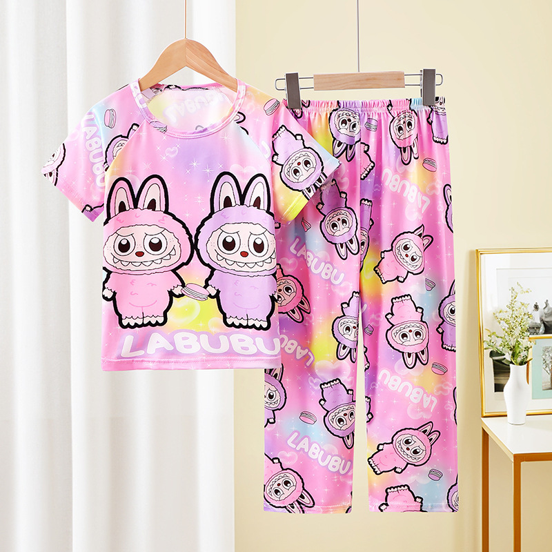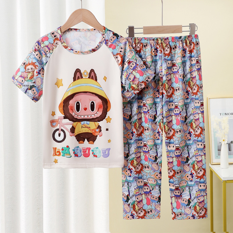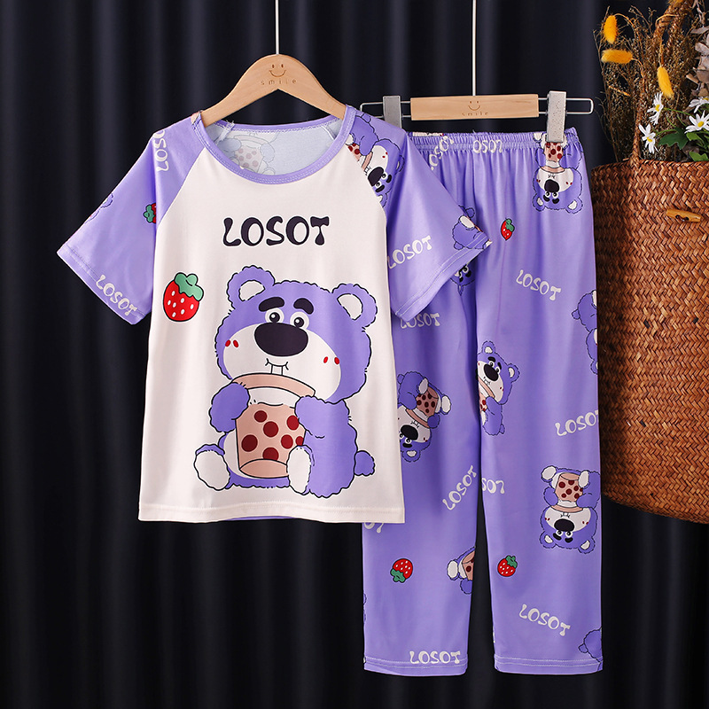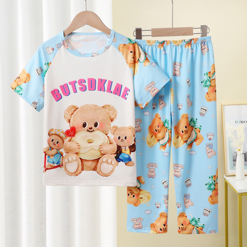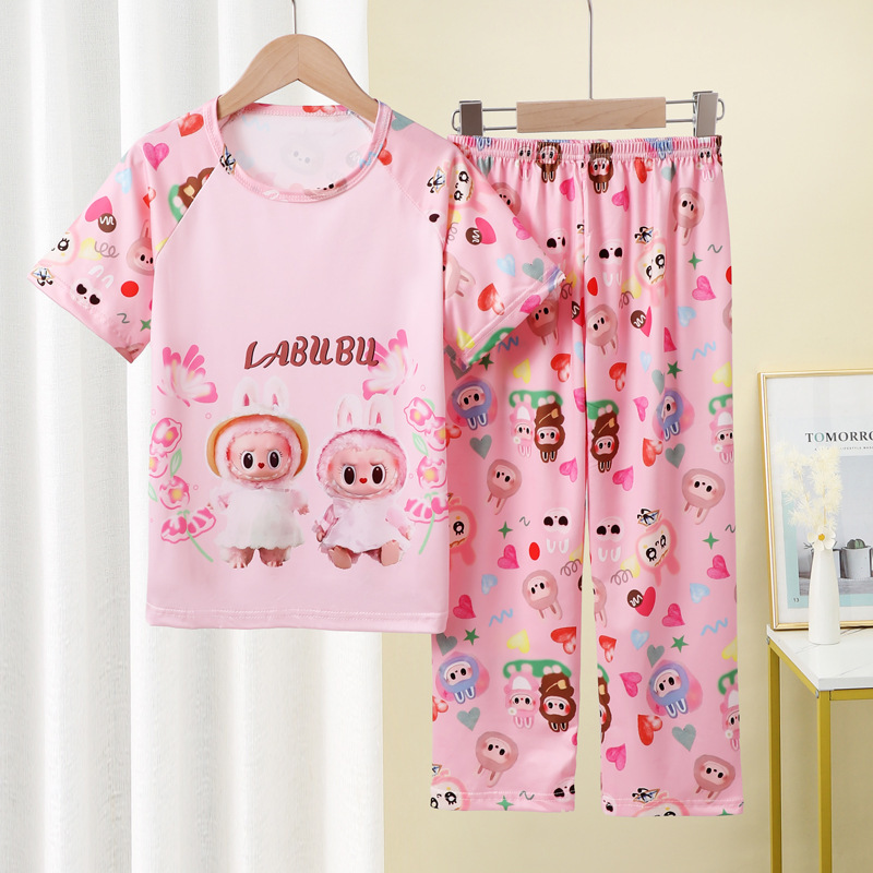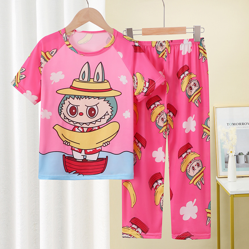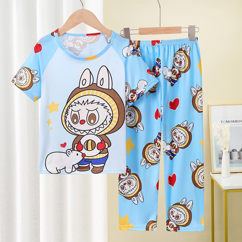 어린이 잠옷 소녀 여름 소년 반팔 바지 얇은 봄과 여름 소녀 만화 큰 어린이 홈 의류 세트