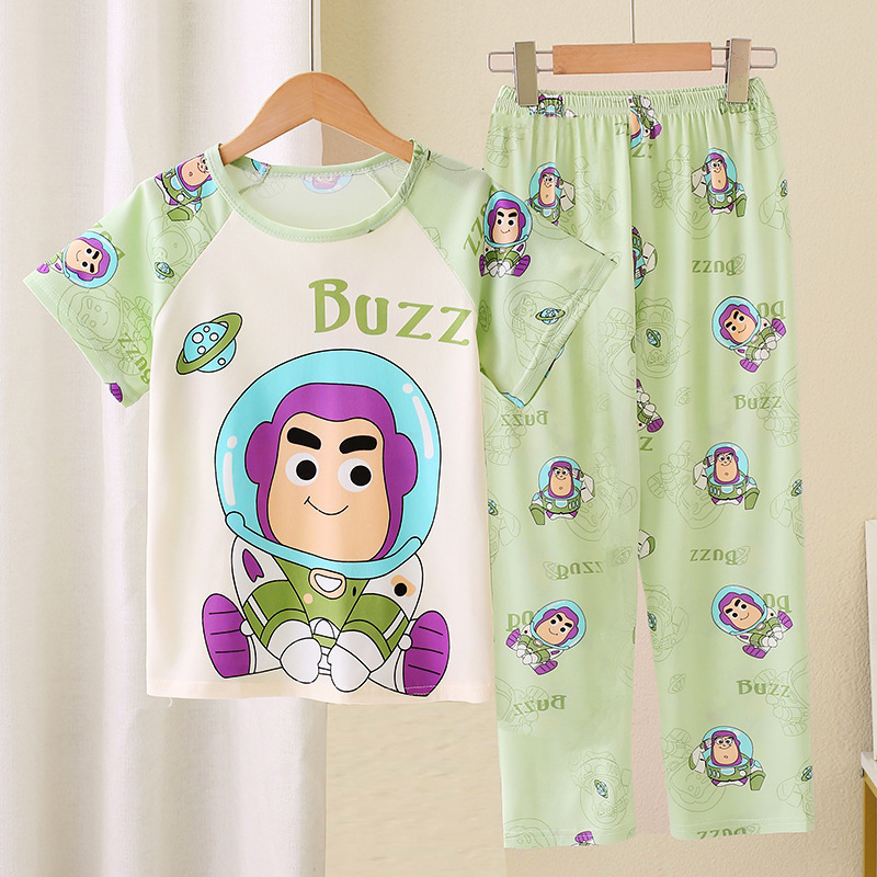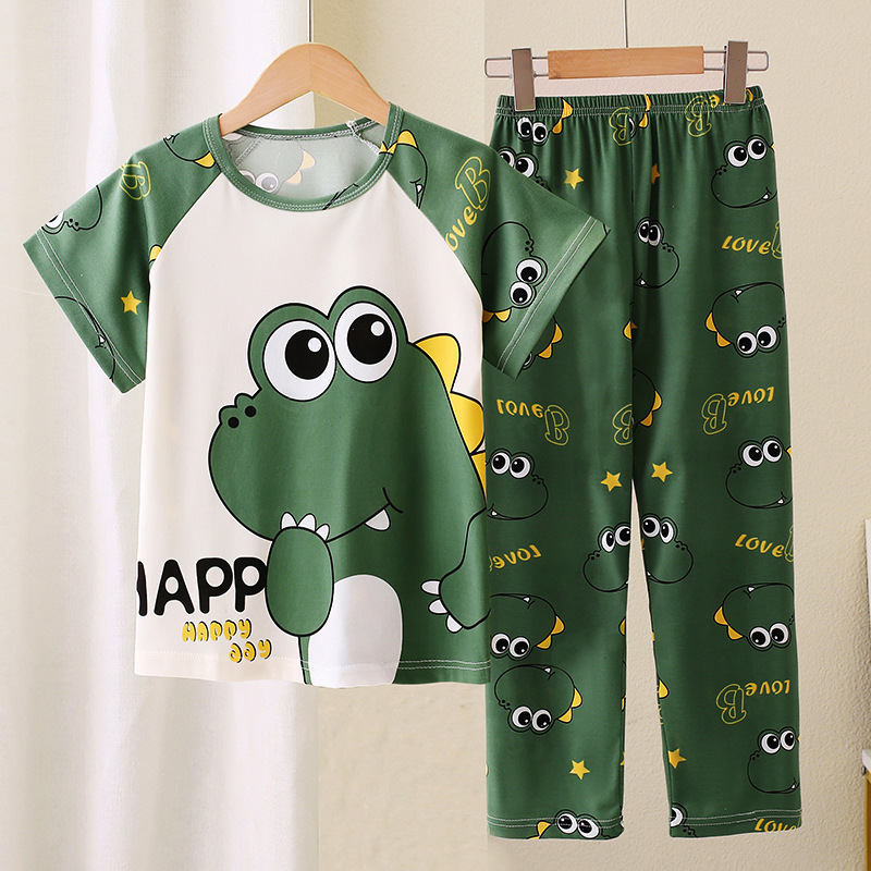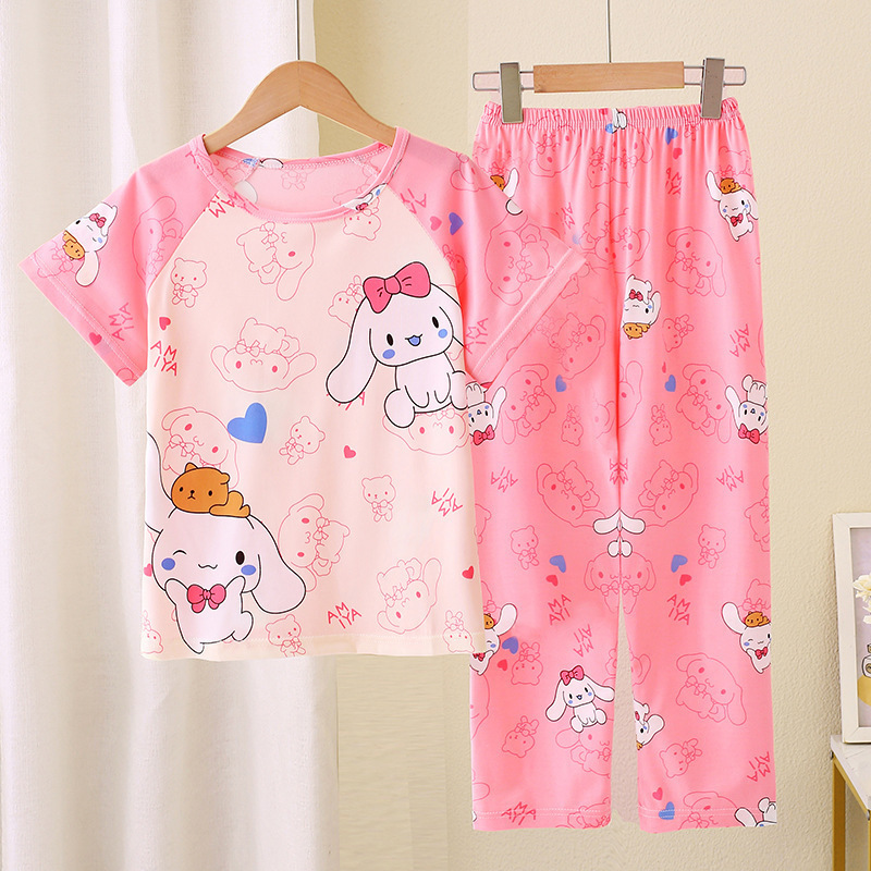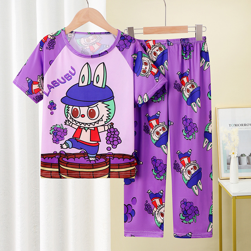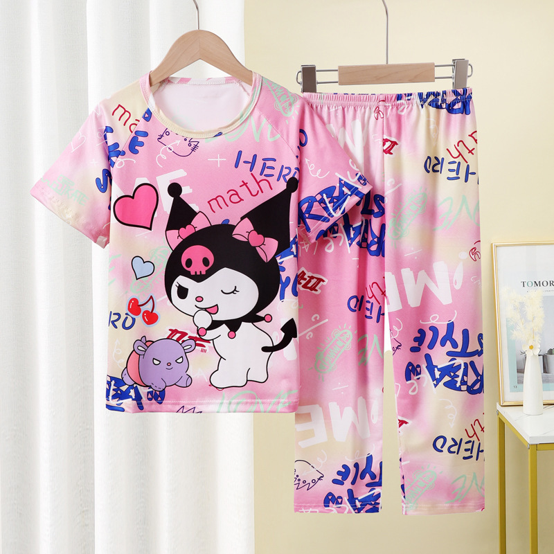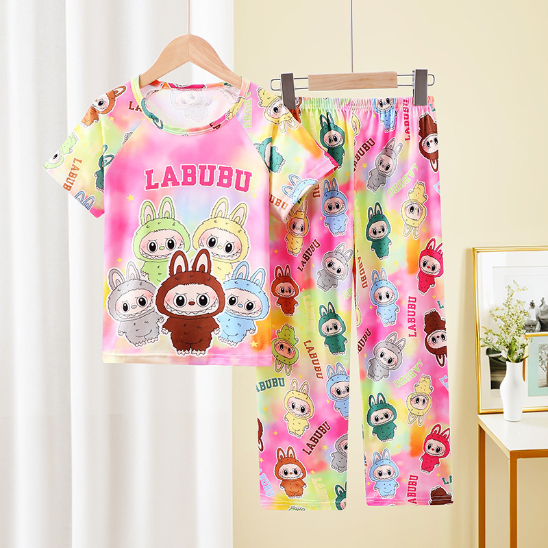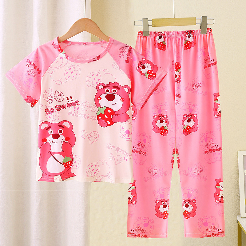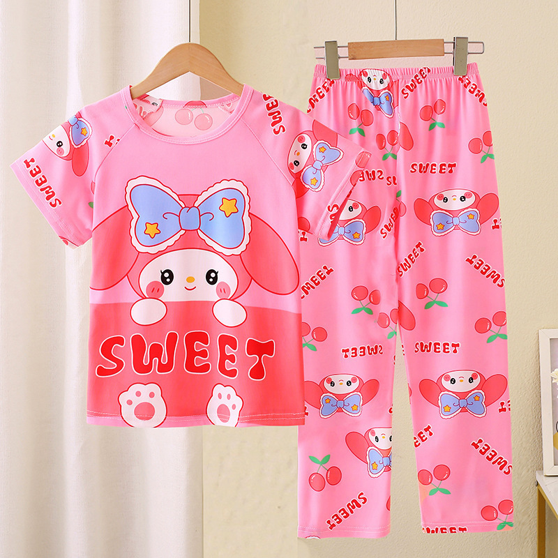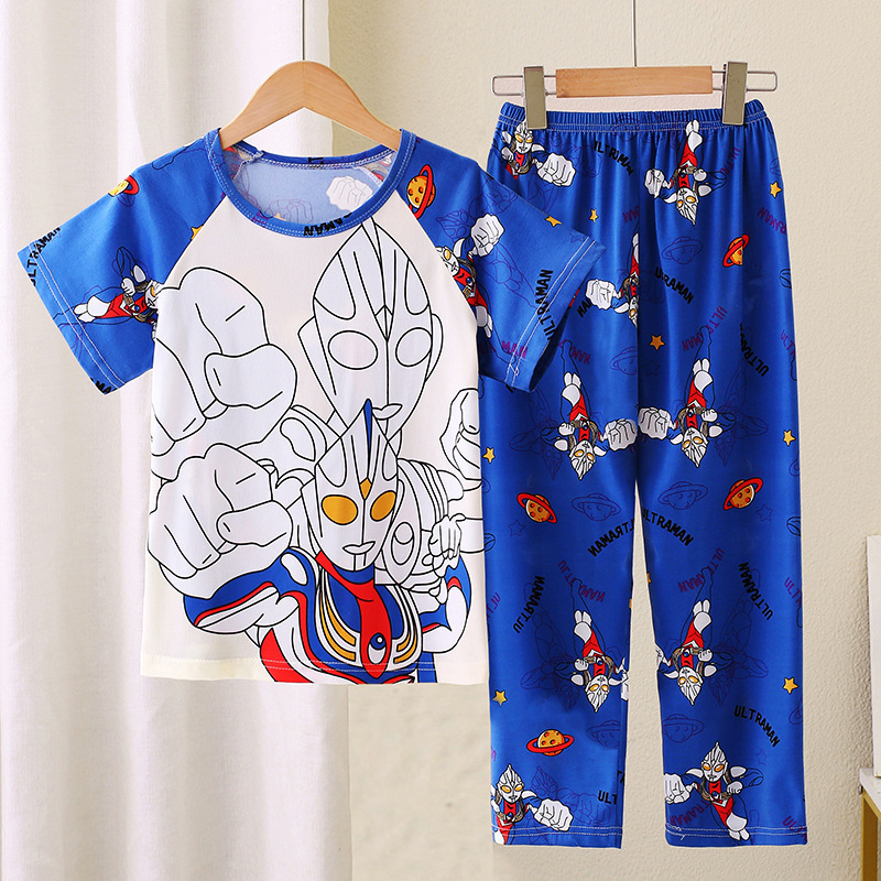 어린이 잠옷 소녀 여름 소년 반팔 바지 얇은 봄과 여름 소녀 만화 큰 어린이 홈 의류 세트