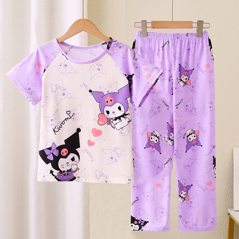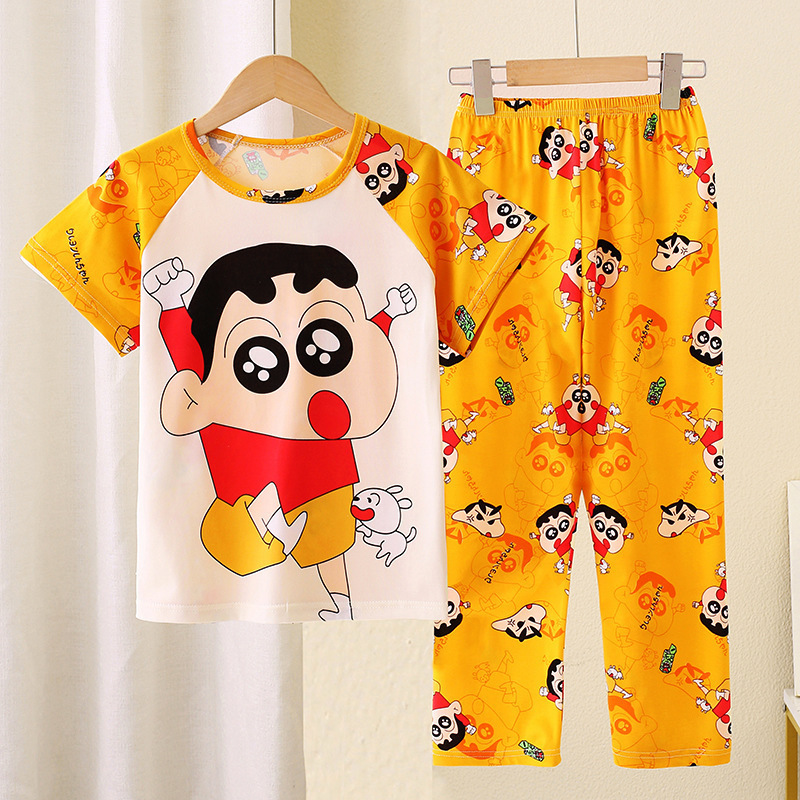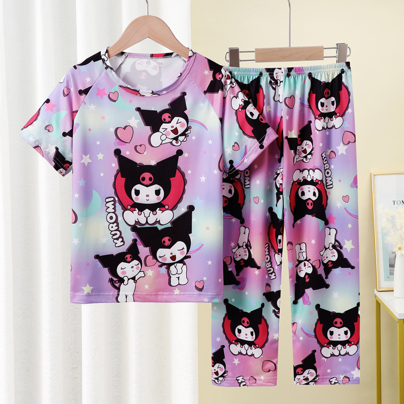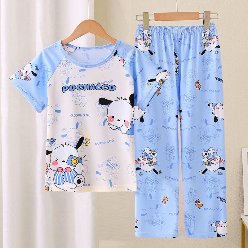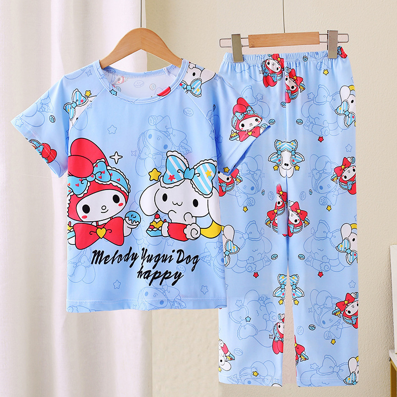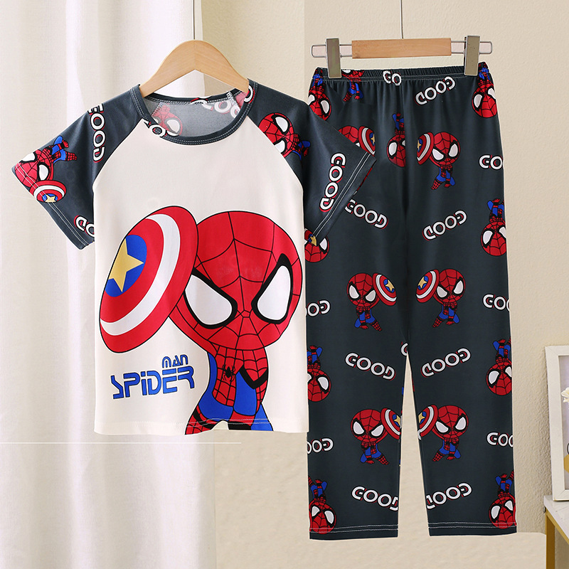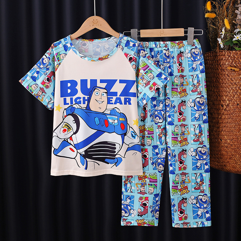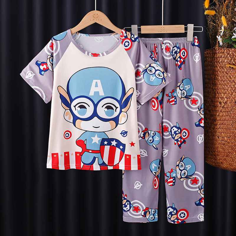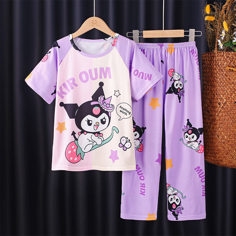 어린이 잠옷 소녀 여름 소년 반팔 바지 얇은 봄과 여름 소녀 만화 큰 어린이 홈 의류 세트