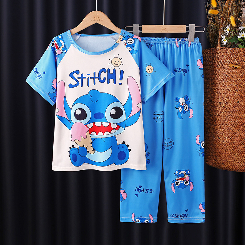 어린이 잠옷 소녀 여름 소년 반팔 바지 얇은 봄과 여름 소녀 만화 큰 어린이 홈 의류 세트스토어 가기