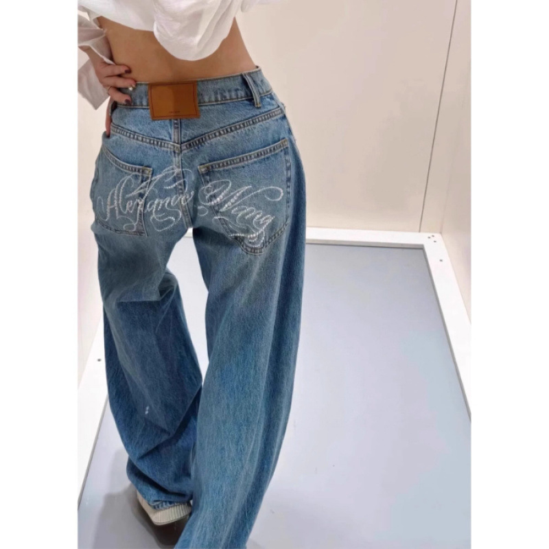 미국 거리 중공업 다시 뜨거운 시추 편지 높은 허리 청바지 여성의 봄 느슨한 스트레이트 Mop Machete 바지스토어 가기