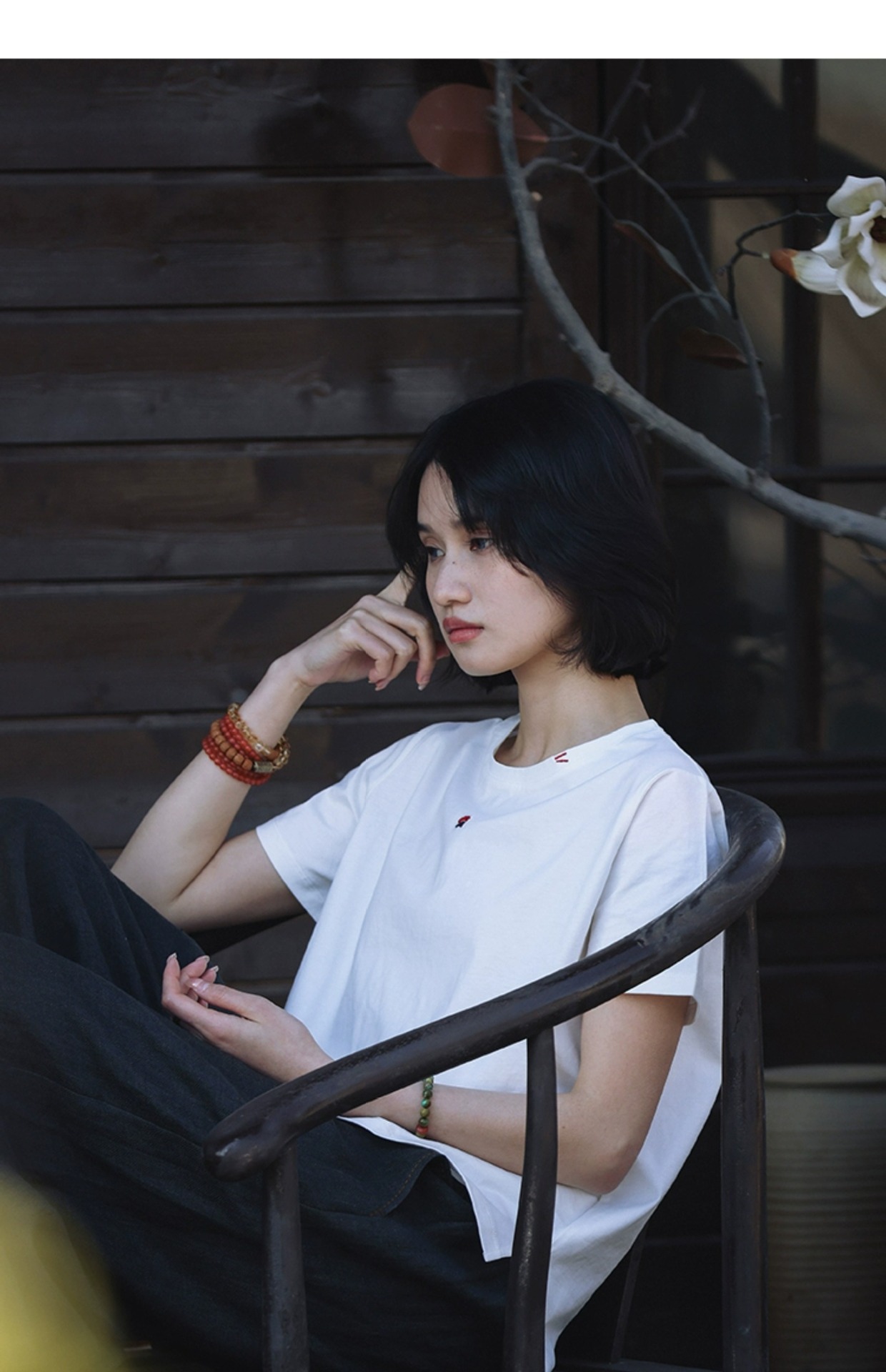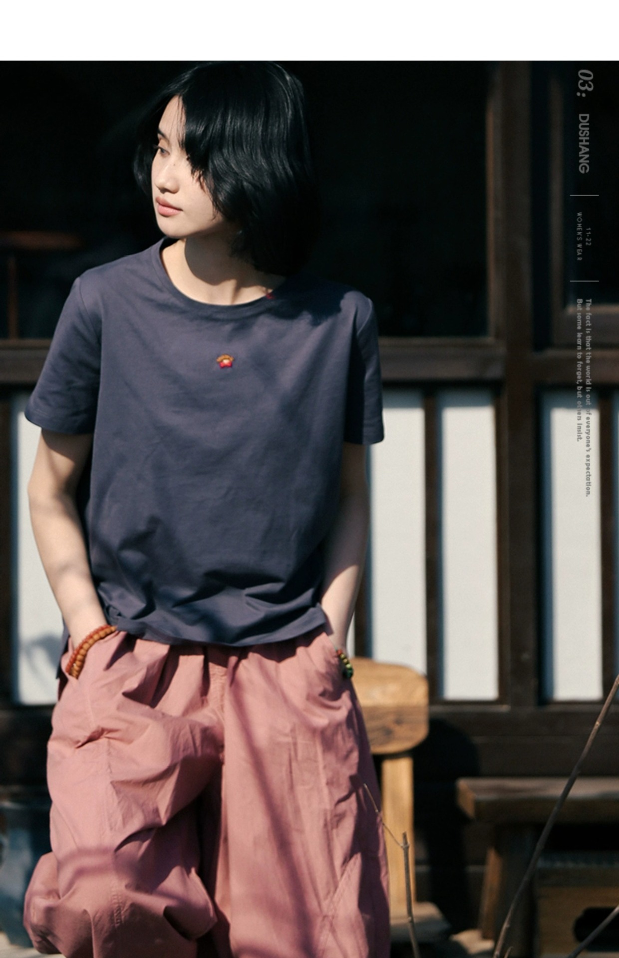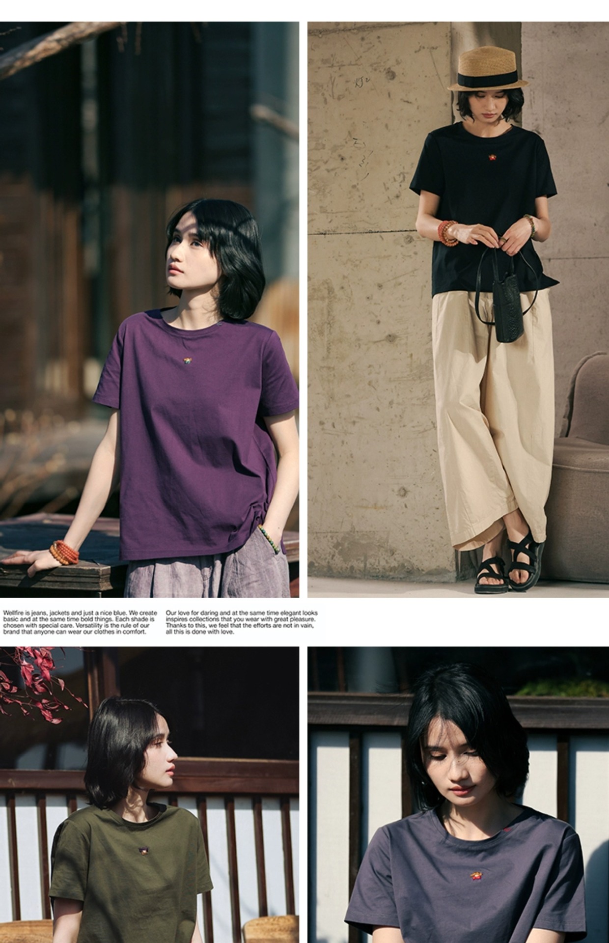2026 멀티 컬러 마이걸 자수 부드럽고 가벼운 캐주얼 라운드넥 반팔 티셔츠 여성 상의 여름 패션스토어 가기