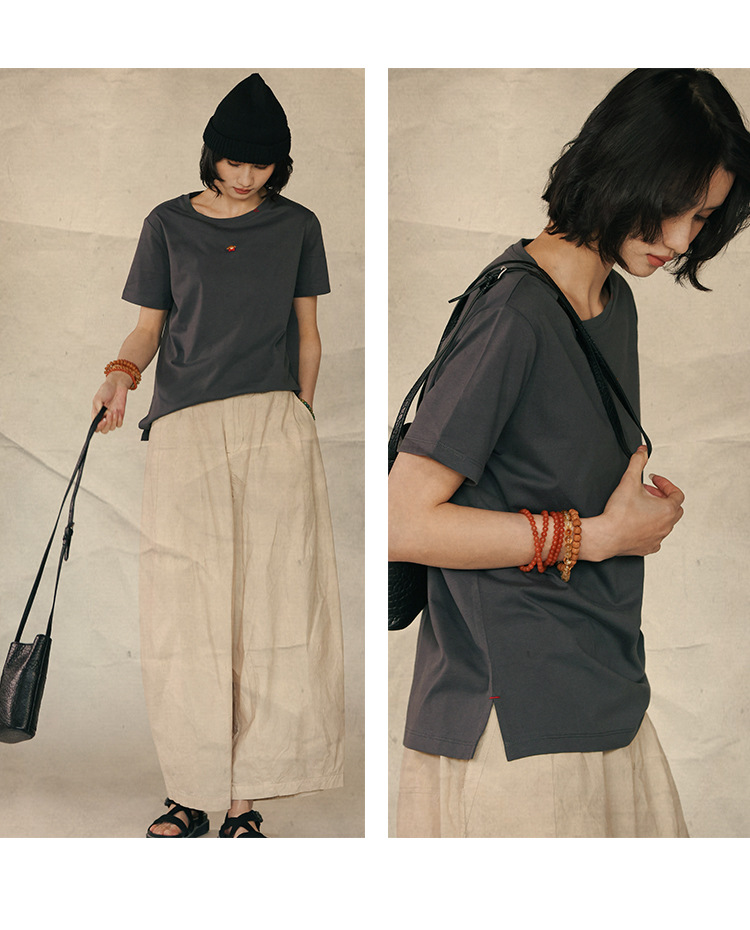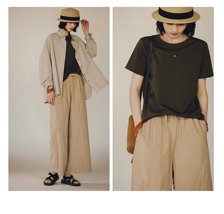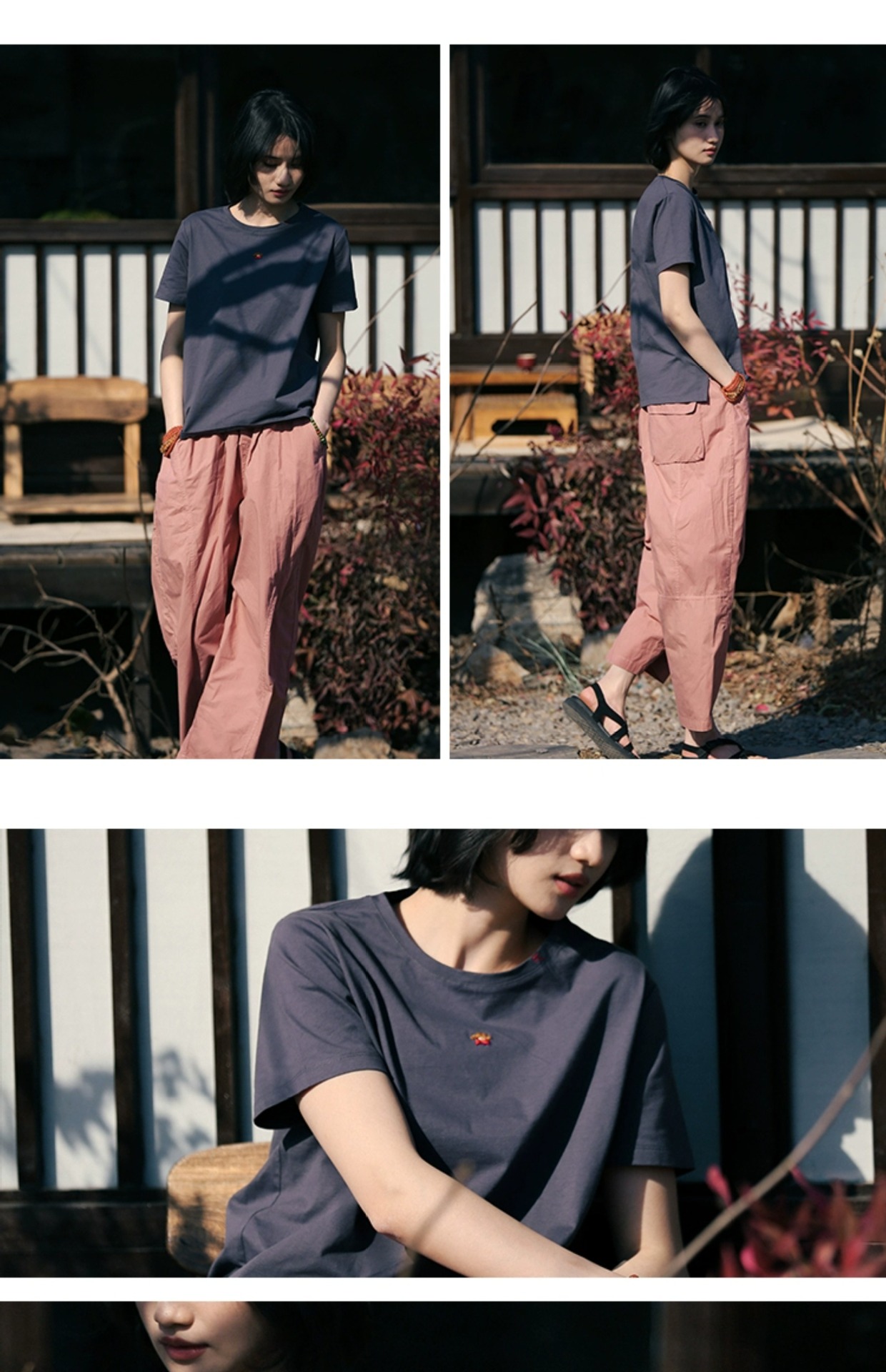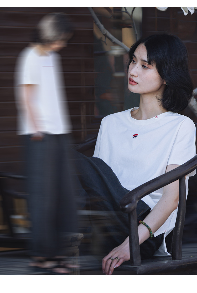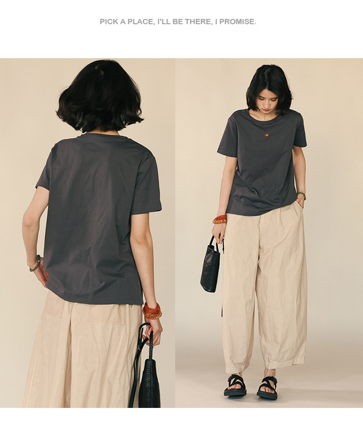 2026 멀티 컬러 마이걸 자수 부드럽고 가벼운 캐주얼 라운드넥 반팔 티셔츠 여성 상의 여름 패션스토어 가기