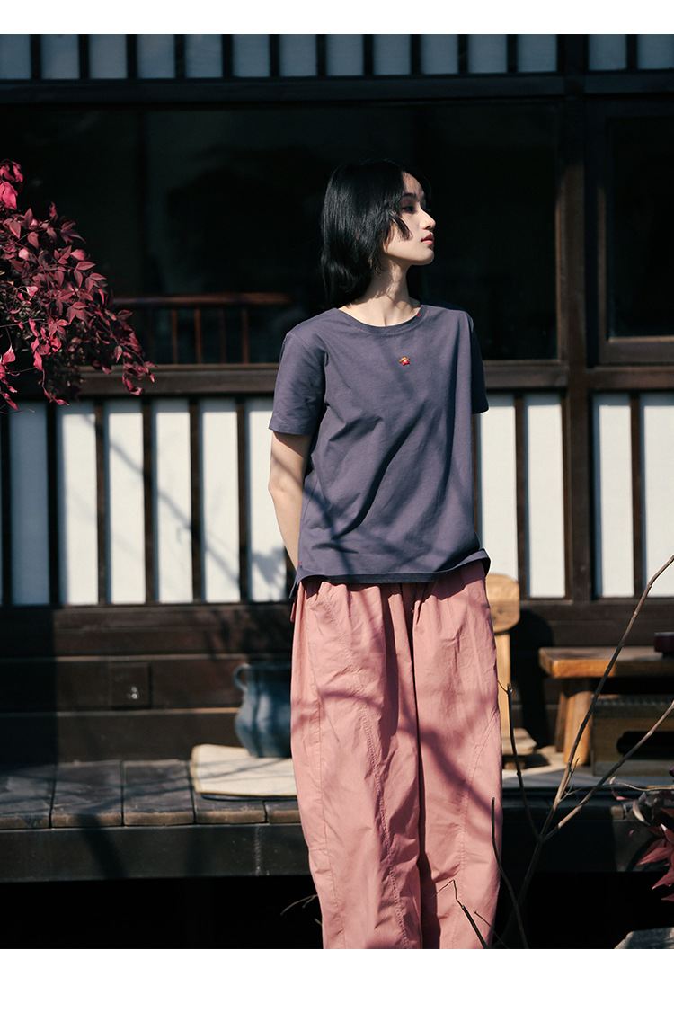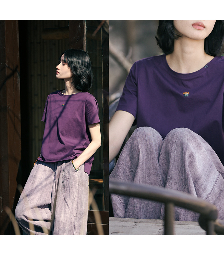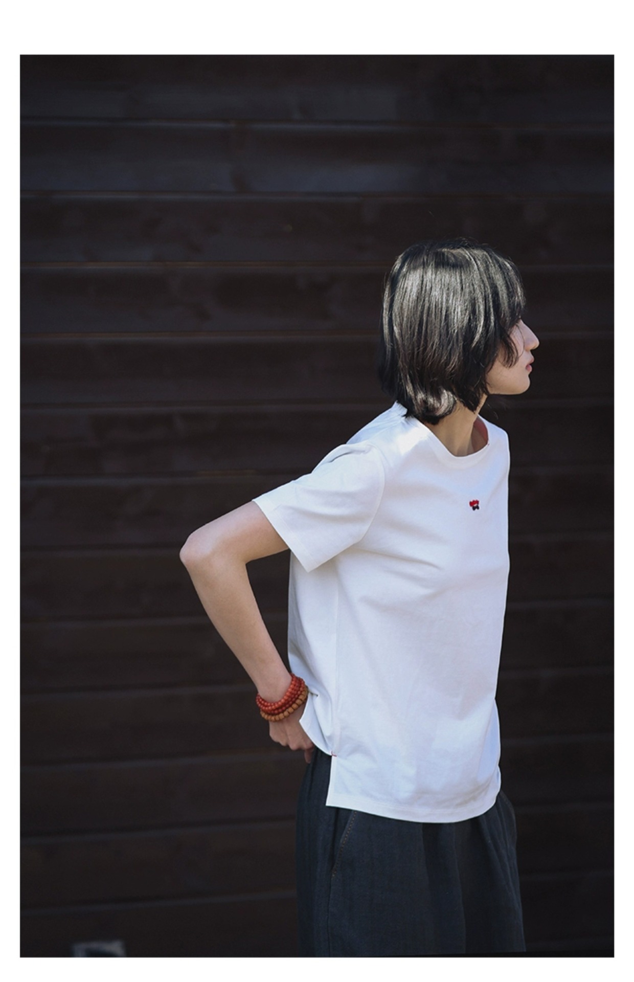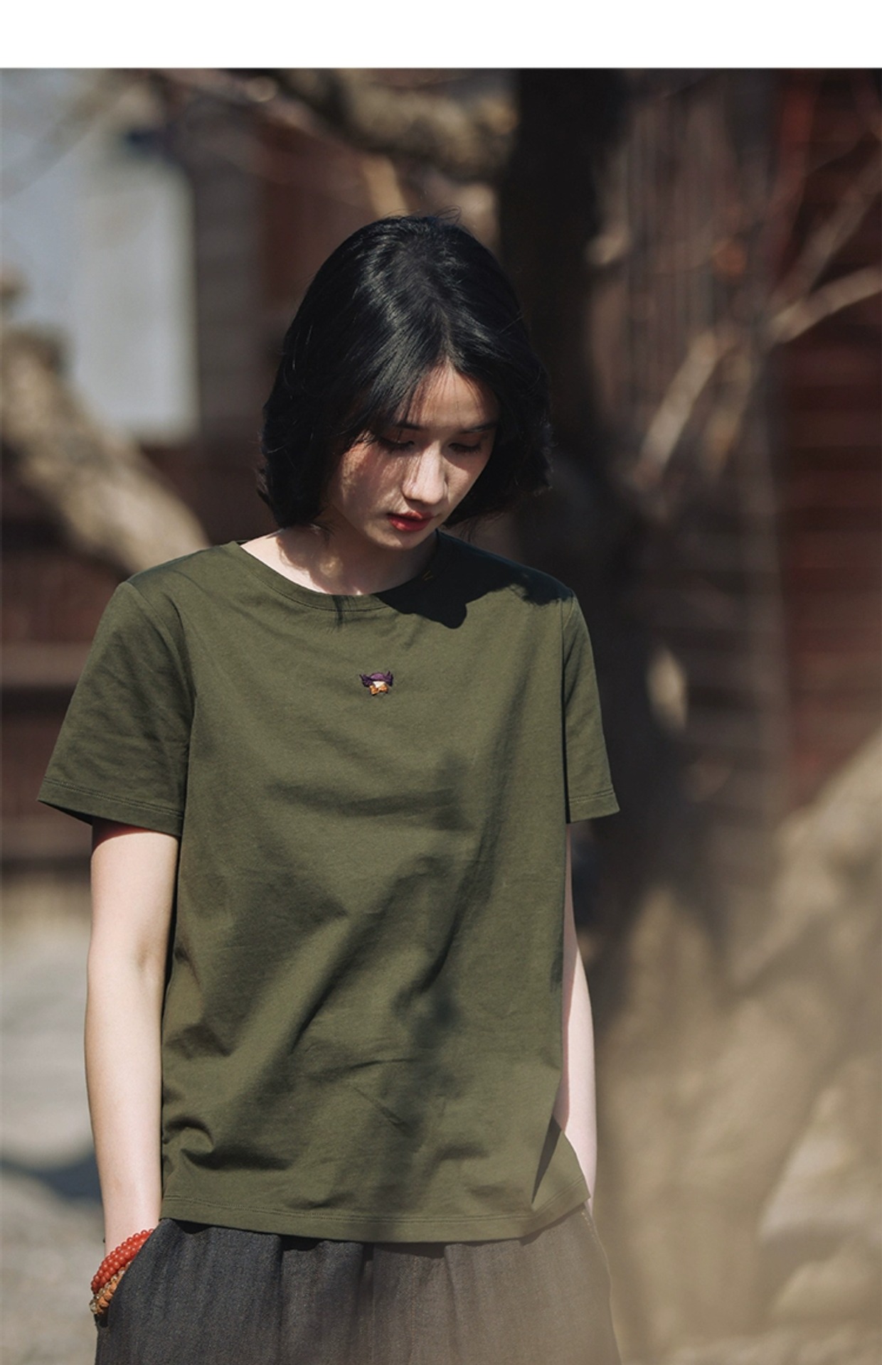 2026 멀티 컬러 마이걸 자수 부드럽고 가벼운 캐주얼 라운드넥 반팔 티셔츠 여성 상의 여름 패션
