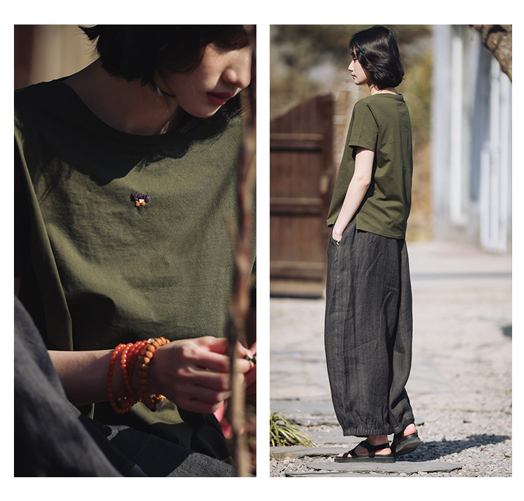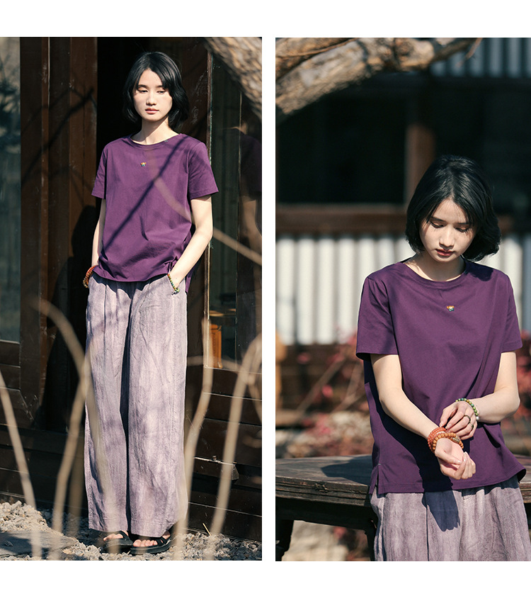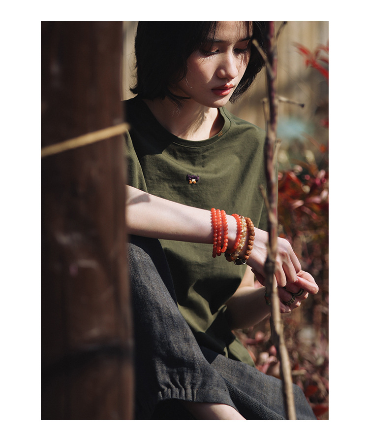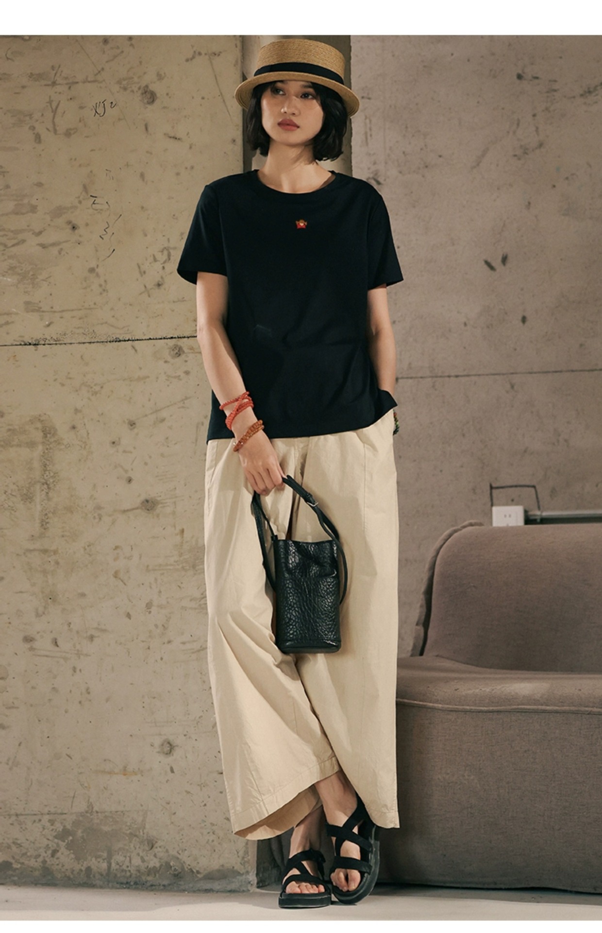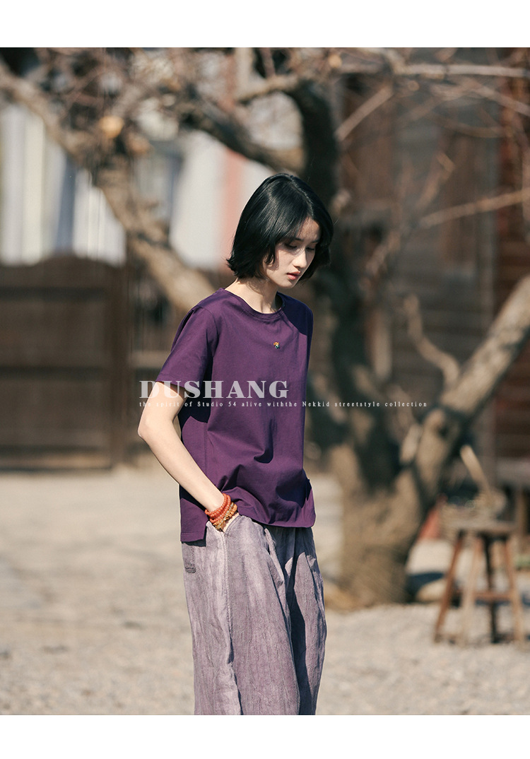 2026 멀티 컬러 마이걸 자수 부드럽고 가벼운 캐주얼 라운드넥 반팔 티셔츠 여성 상의 여름 패션