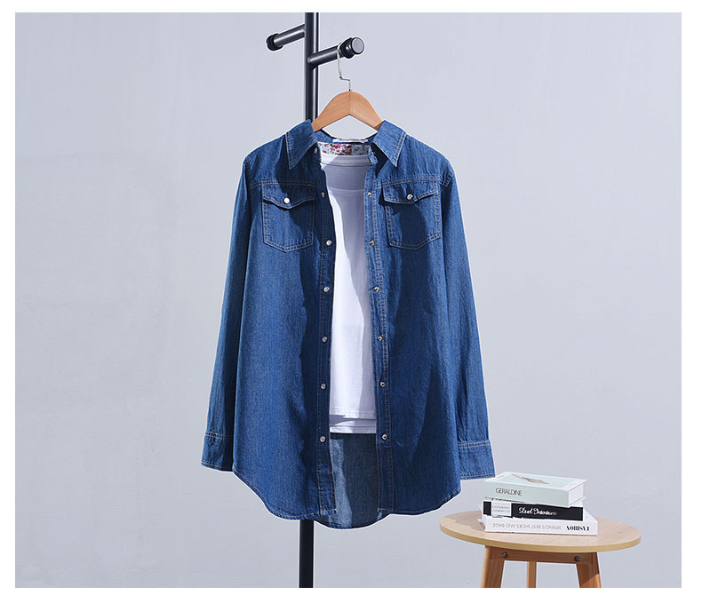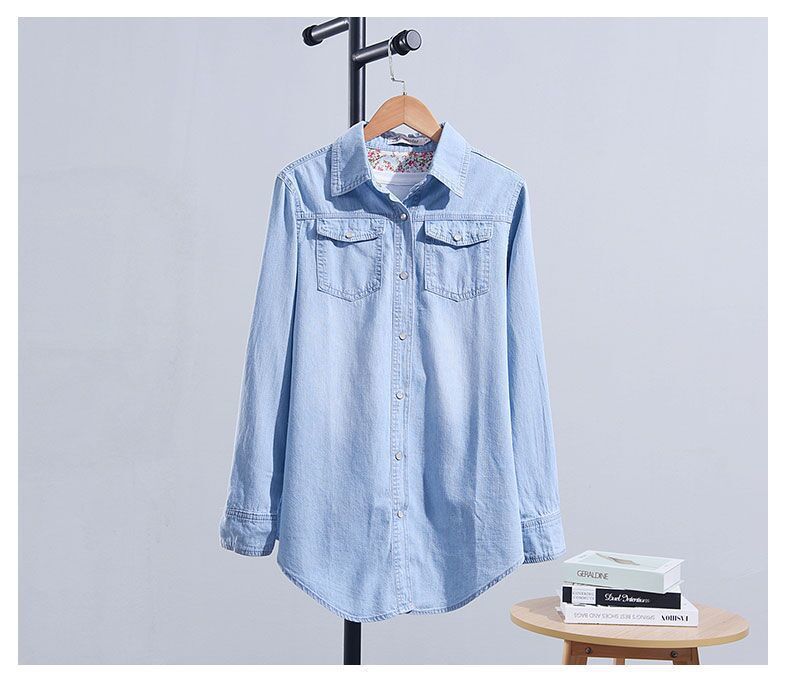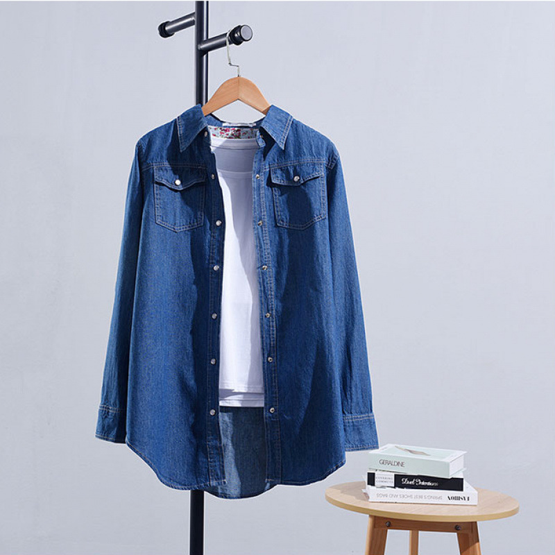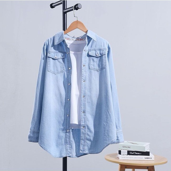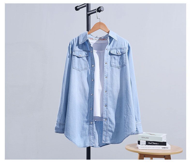 데님 셔츠 여성의 여름 봄 및 가을 면화 긴 소매 캐주얼 느슨한 얇은 데님 여성 데님 태양 보호 의류스토어 가기