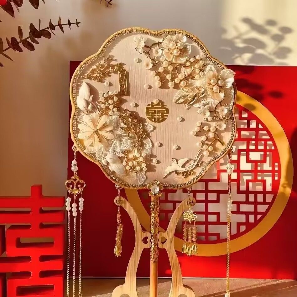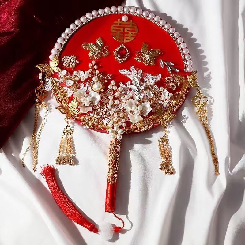 고대 스타일 Tuanzi 신부 결혼식 Xiuhe 중국 결혼식 중국 Xiuhe 의류 안녕하세요 팬 들고 꽃 diy 완성 된 팬스토어 가기