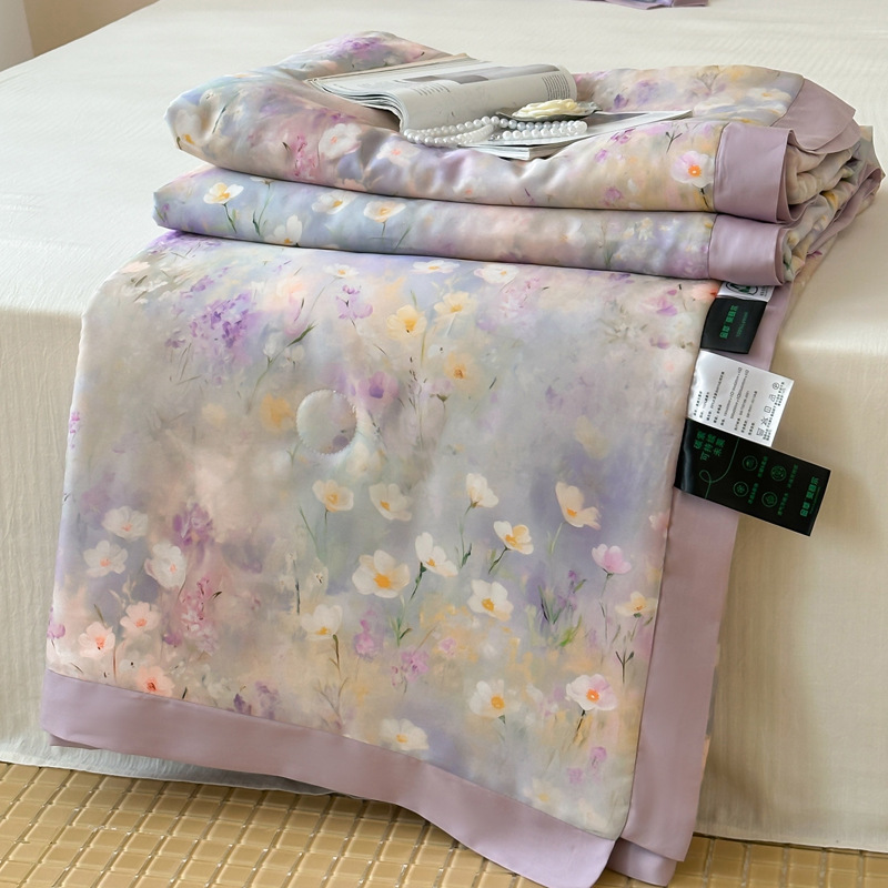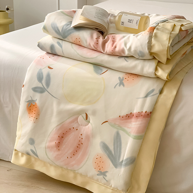 누드 수면용 양면 텐셀 여름 이불, 워시드 실크 에어컨 이불, 봄, 가을 이불 코어, 싱글 및 더블 아이스 실크 여름 시원한 이불, 얇은 이불