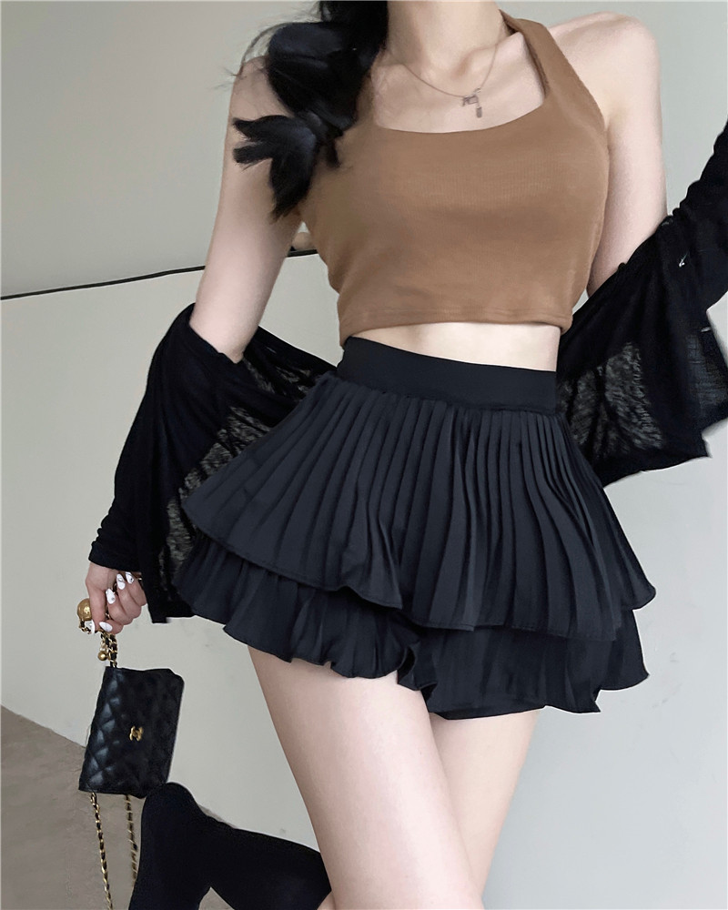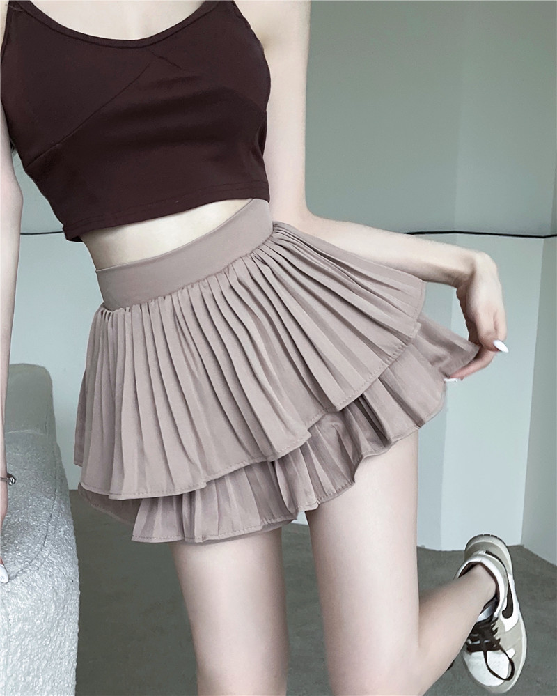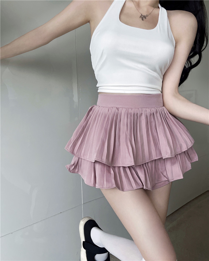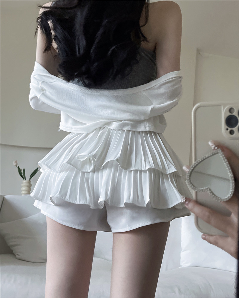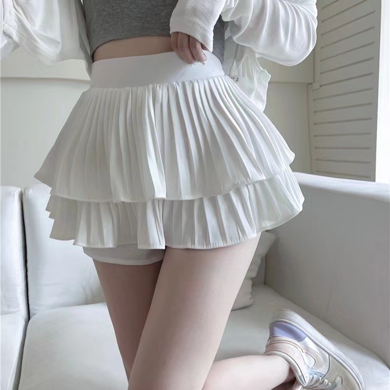 케이크 스커트 여성용 화이트 하이 웨이스트 스커트 여름 노출 방지 a 라인 스커트 바지 작은 주름 퍼프 스커트