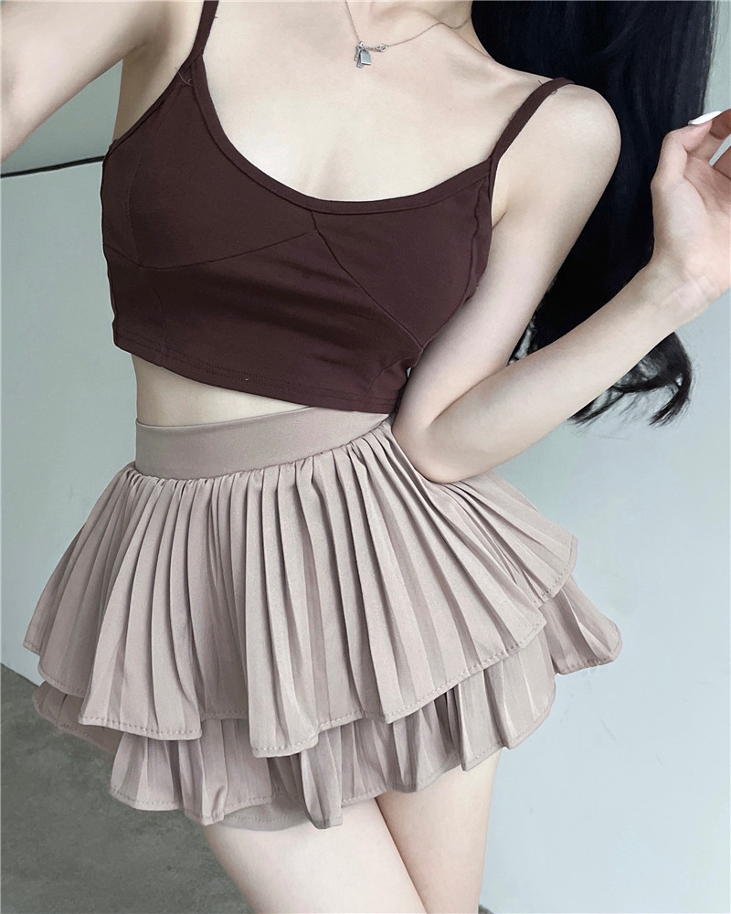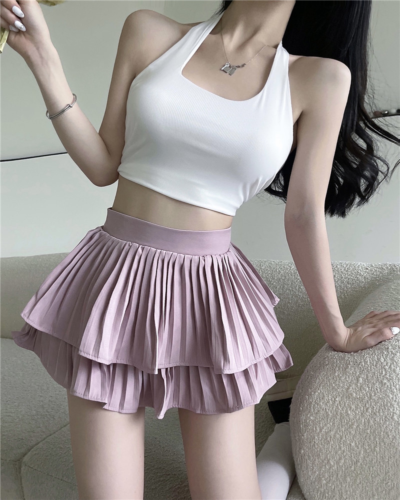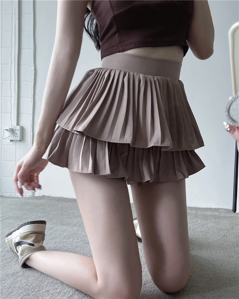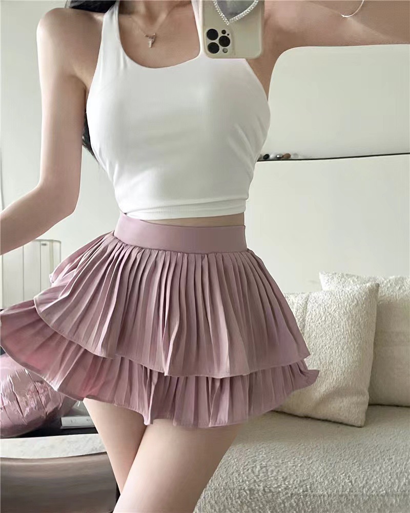 케이크 스커트 여성용 화이트 하이 웨이스트 스커트 여름 노출 방지 a 라인 스커트 바지 작은 주름 퍼프 스커트