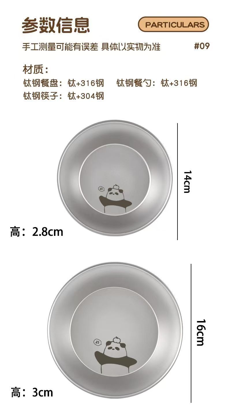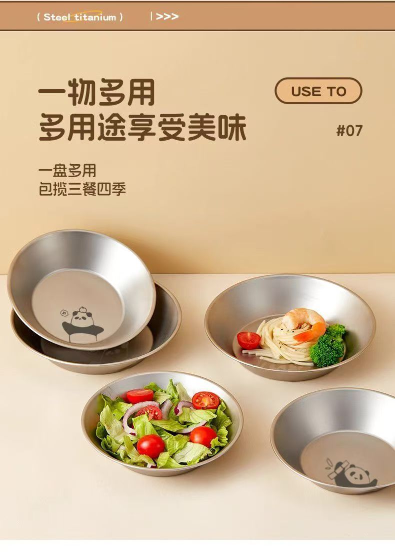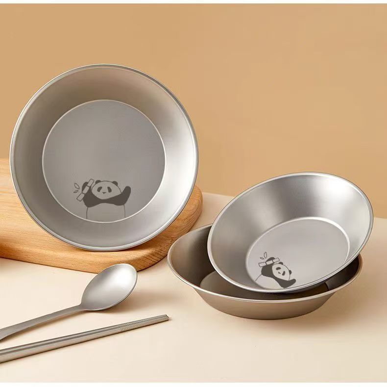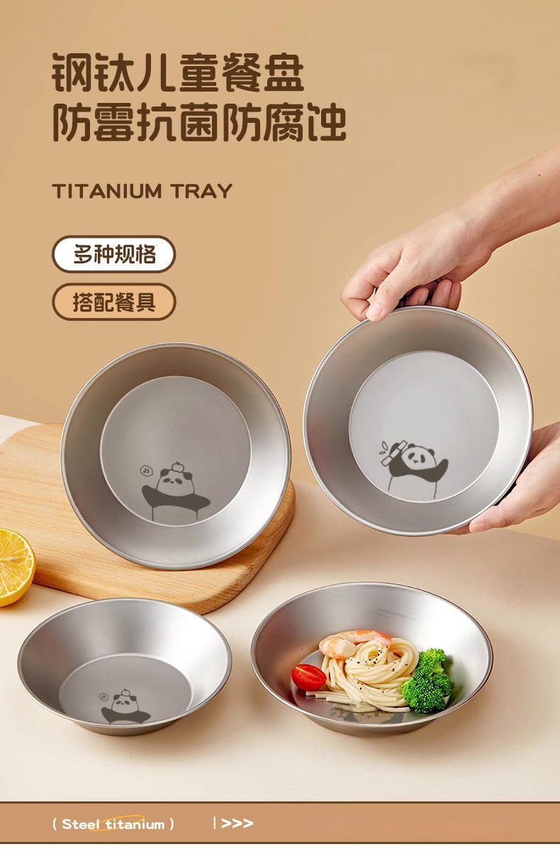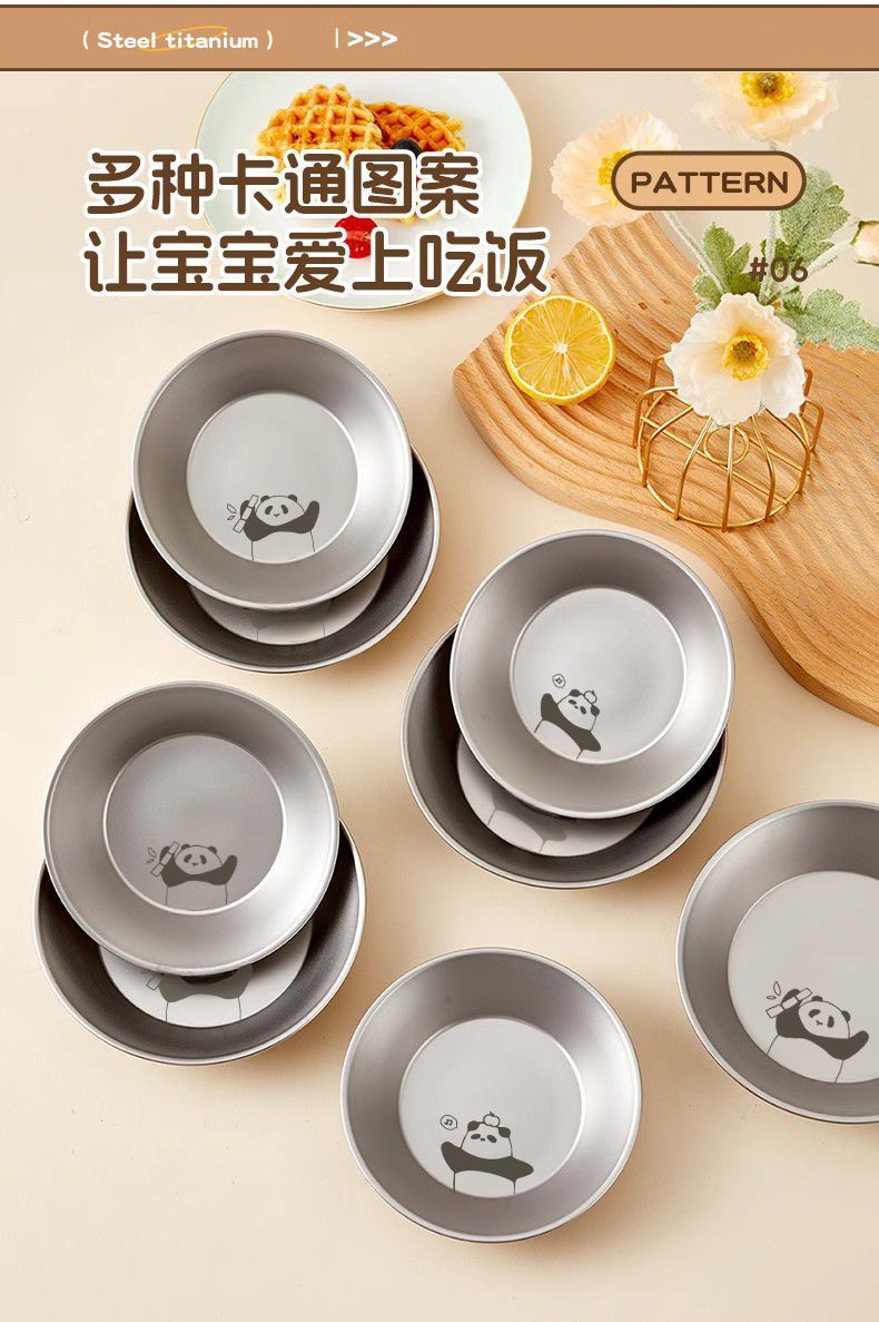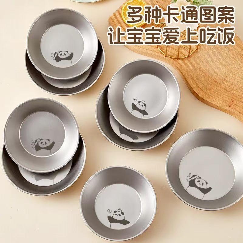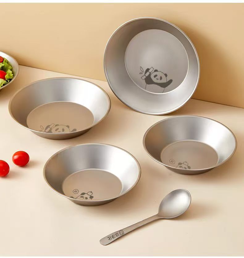 티타늄 강철 디너 플레이트, 스팀 플레이트, 식품 등급 가정용 만화 원형 플랫 플레이트, 야외 바베큐 플레이트, 숟가락 및 젓가락 세트