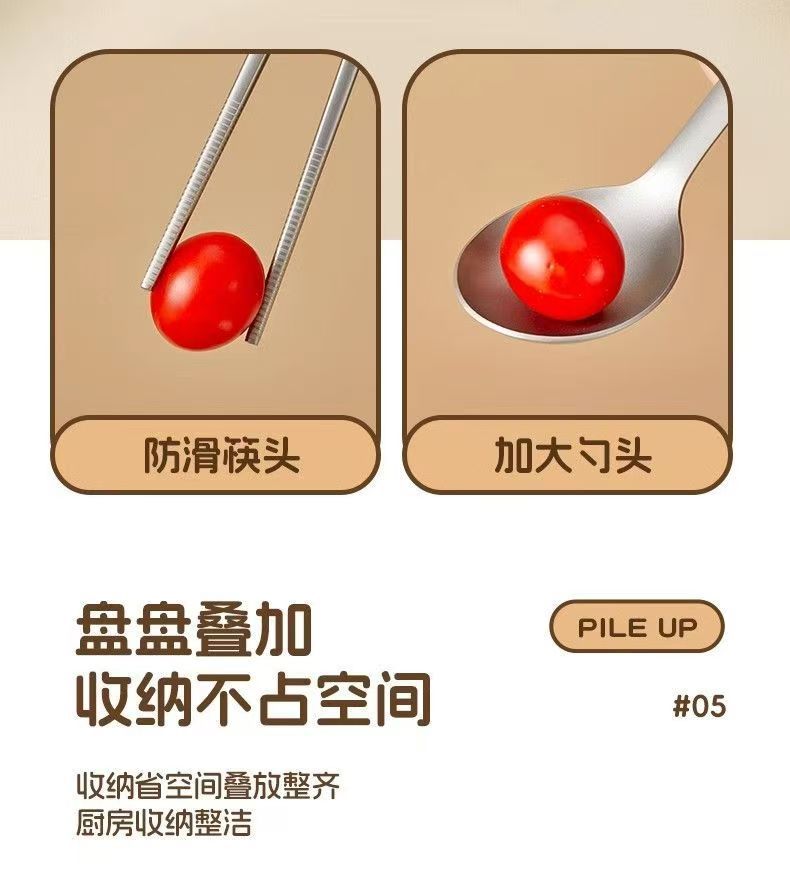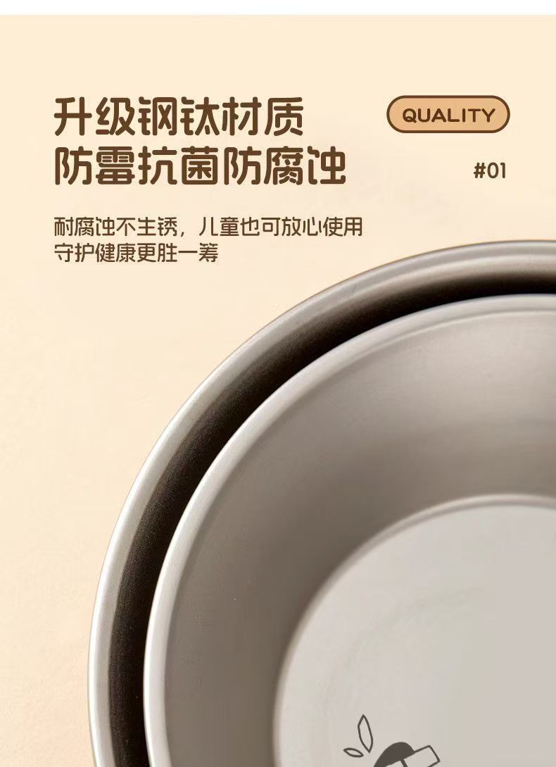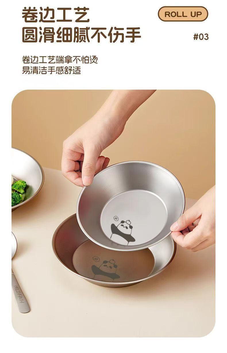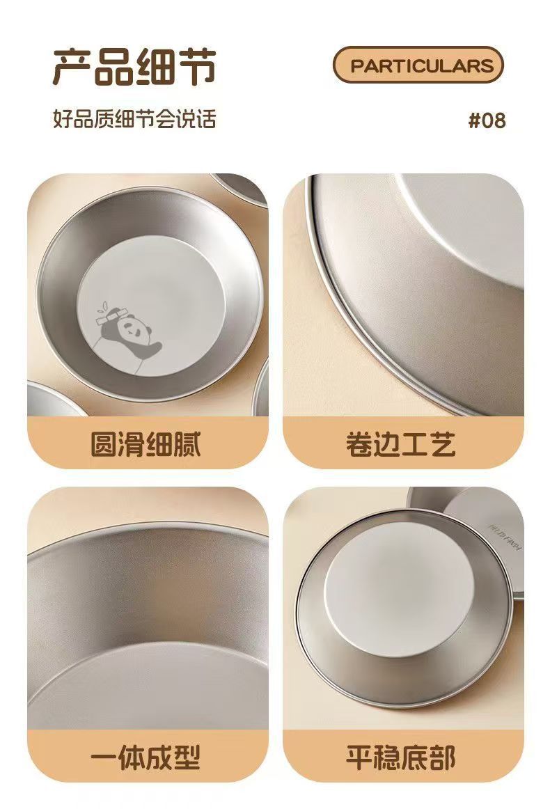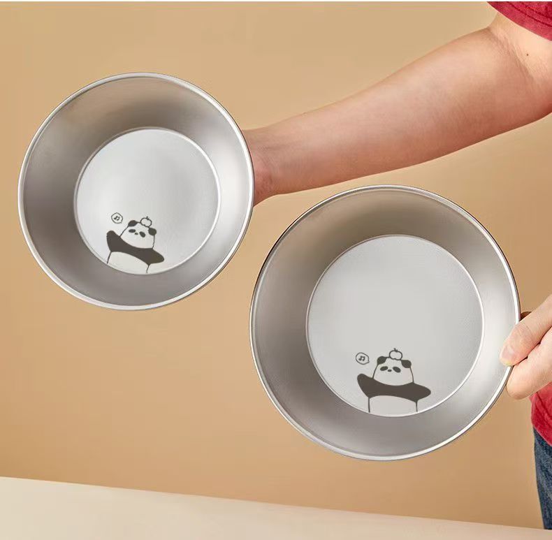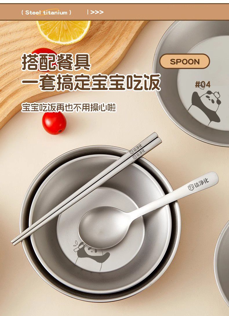 티타늄 강철 디너 플레이트, 스팀 플레이트, 식품 등급 가정용 만화 원형 플랫 플레이트, 야외 바베큐 플레이트, 숟가락 및 젓가락 세트