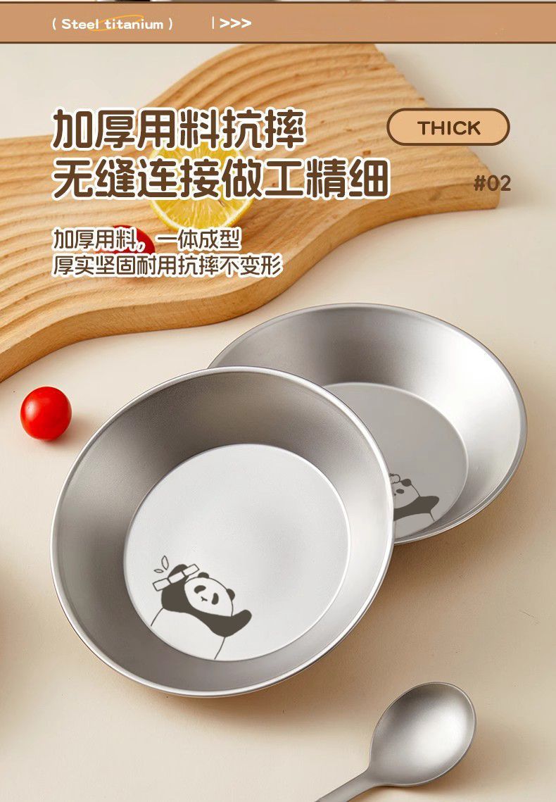티타늄 강철 디너 플레이트, 스팀 플레이트, 식품 등급 가정용 만화 원형 플랫 플레이트, 야외 바베큐 플레이트, 숟가락 및 젓가락 세트스토어 가기