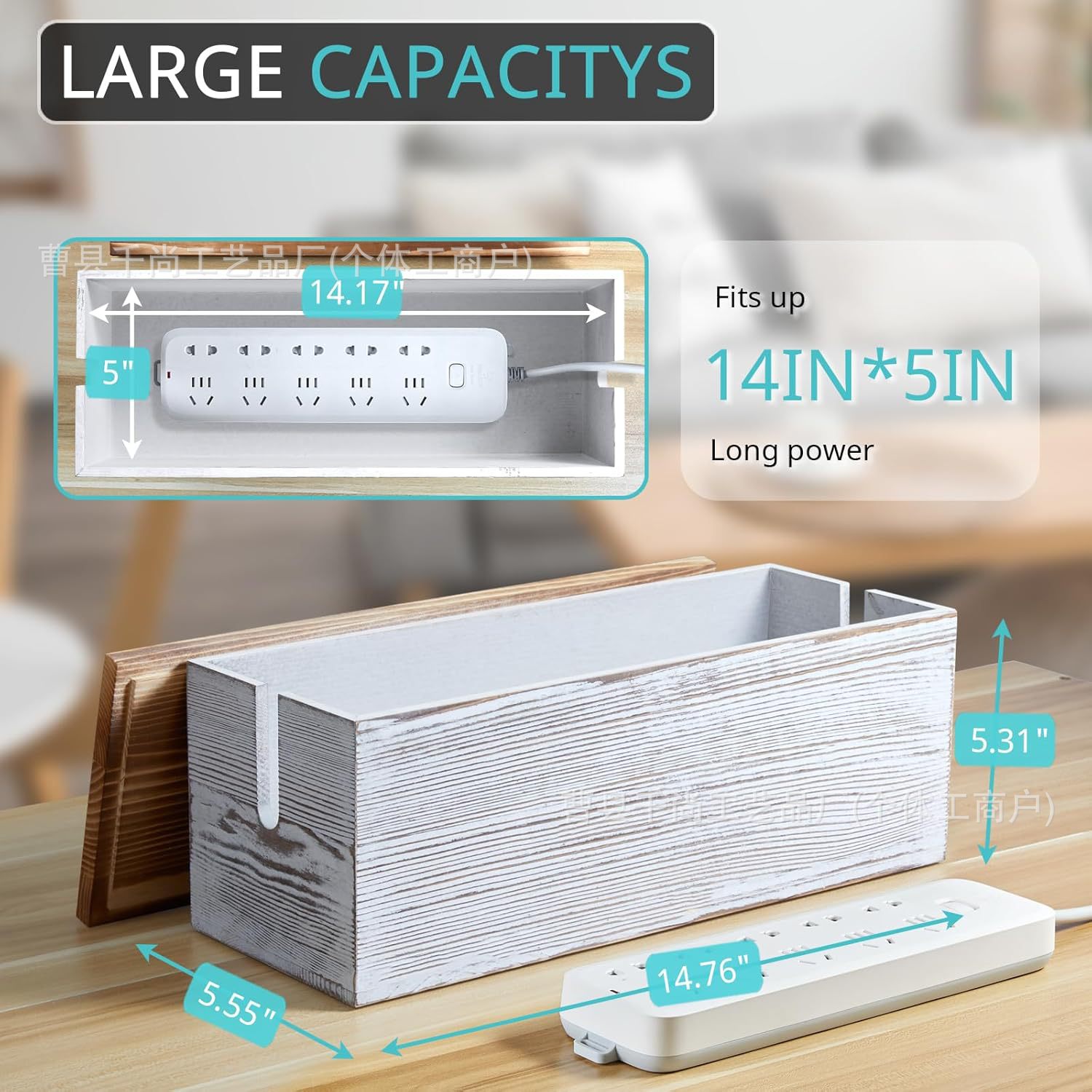 나무 케이블 상자 홈 데이터 케이블 관리 상자 뚜껑 플러그인 보드 보관 상자 책상 아래 와이어 단단한 나무 정리 상자스토어 가기