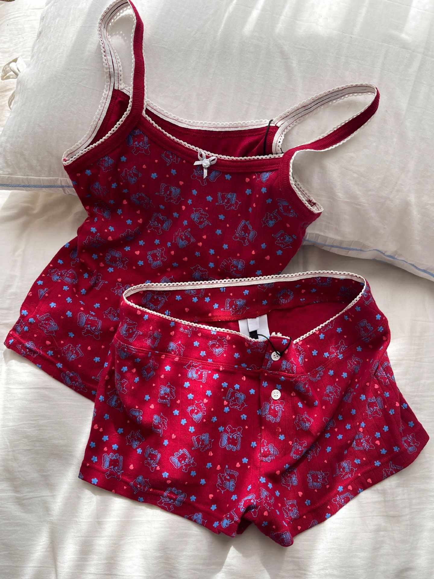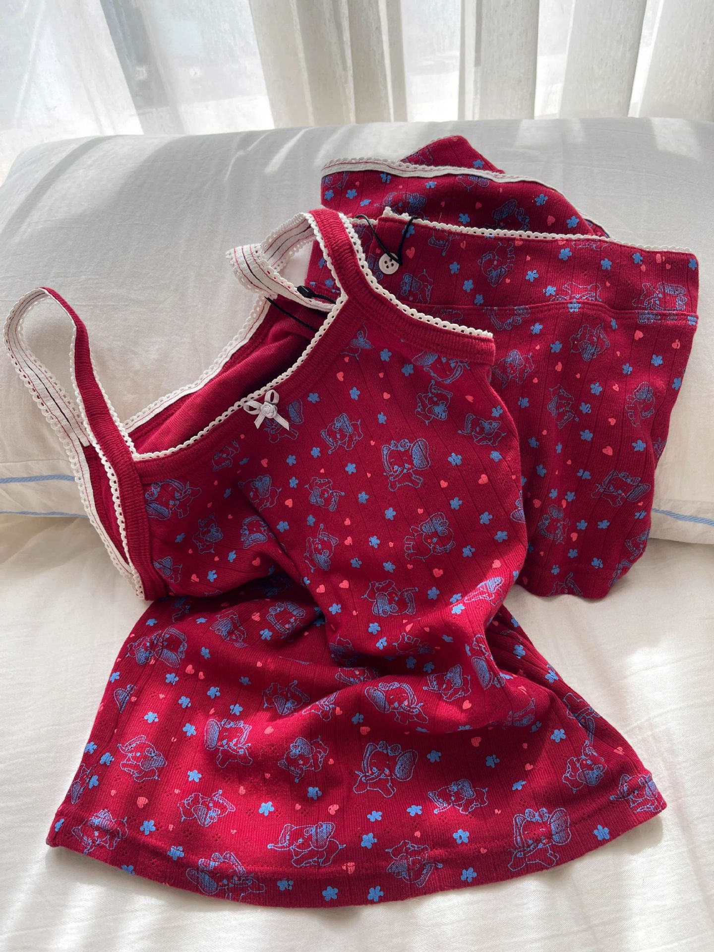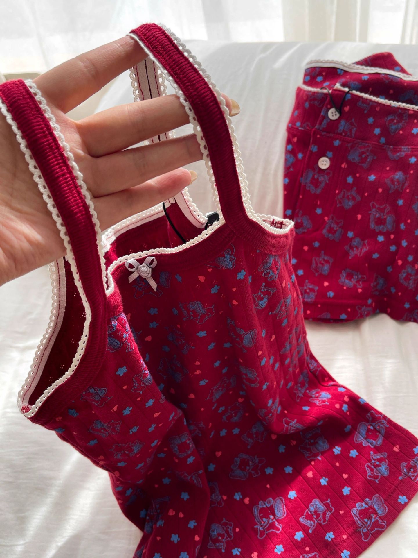 순수한 욕망 스타일 섹시한 붉은 코끼리 슬링 반바지 여름 새 파자마 여성 스파이스 걸스 홈 옷