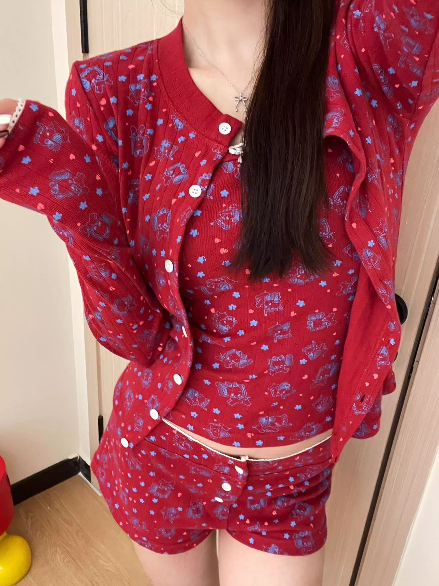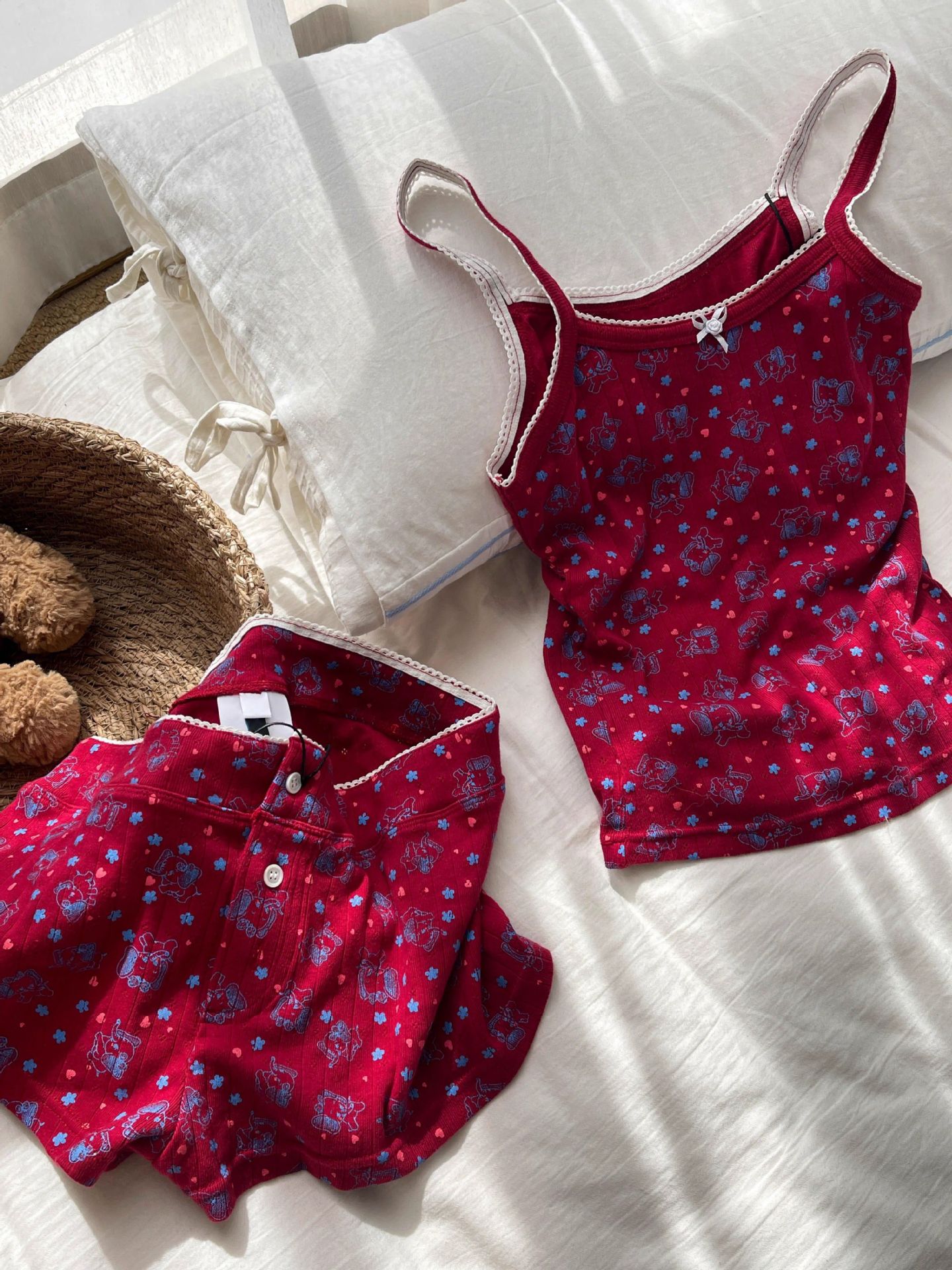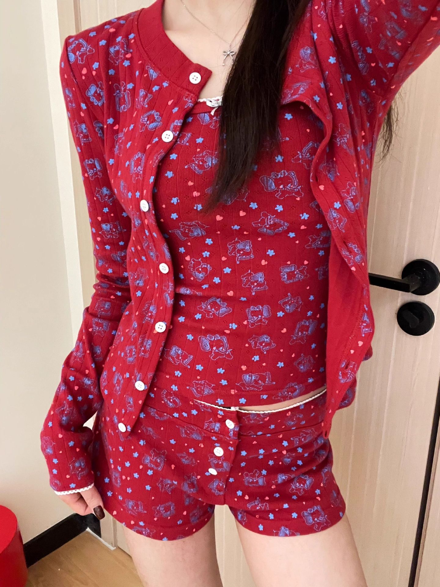 순수한 욕망 스타일 섹시한 붉은 코끼리 슬링 반바지 여름 새 파자마 여성 스파이스 걸스 홈 옷