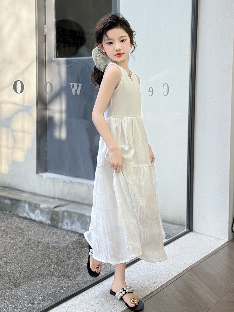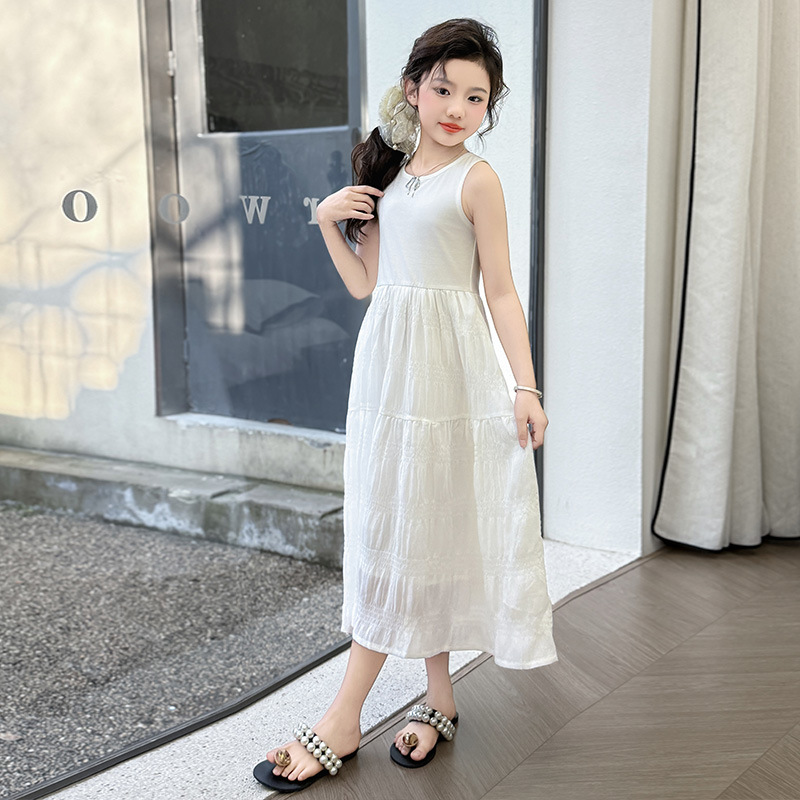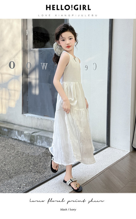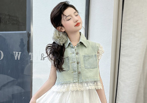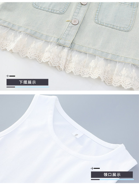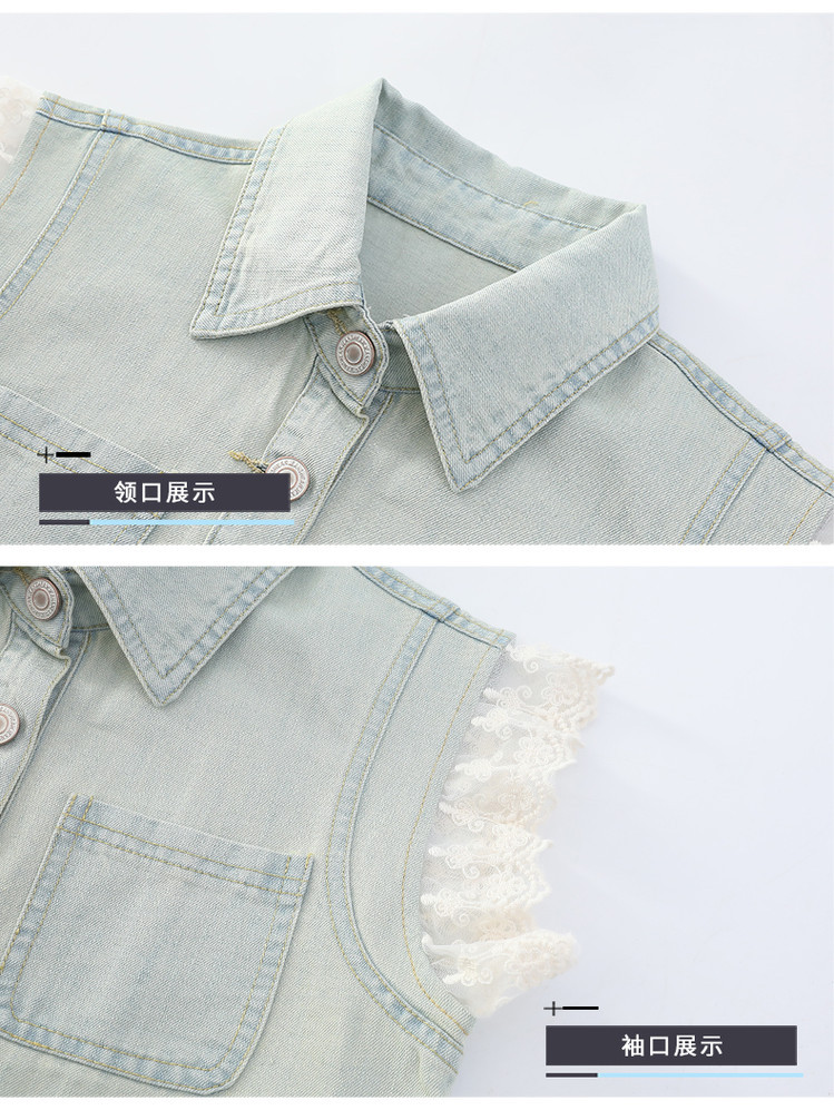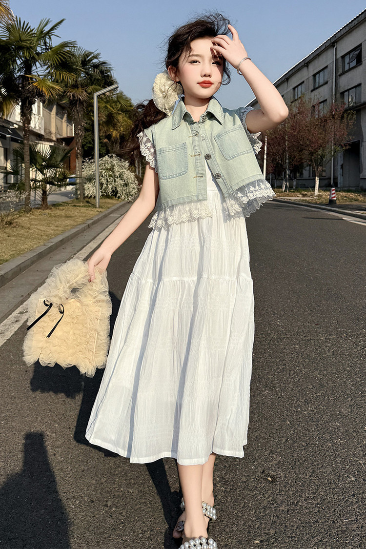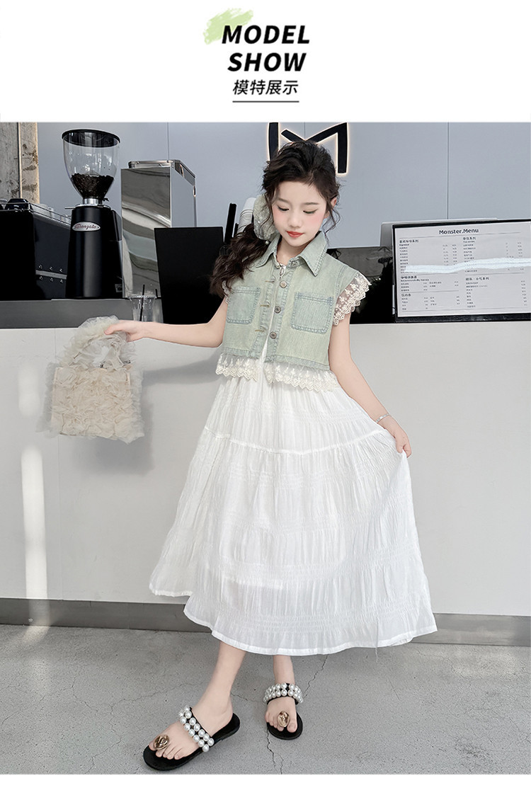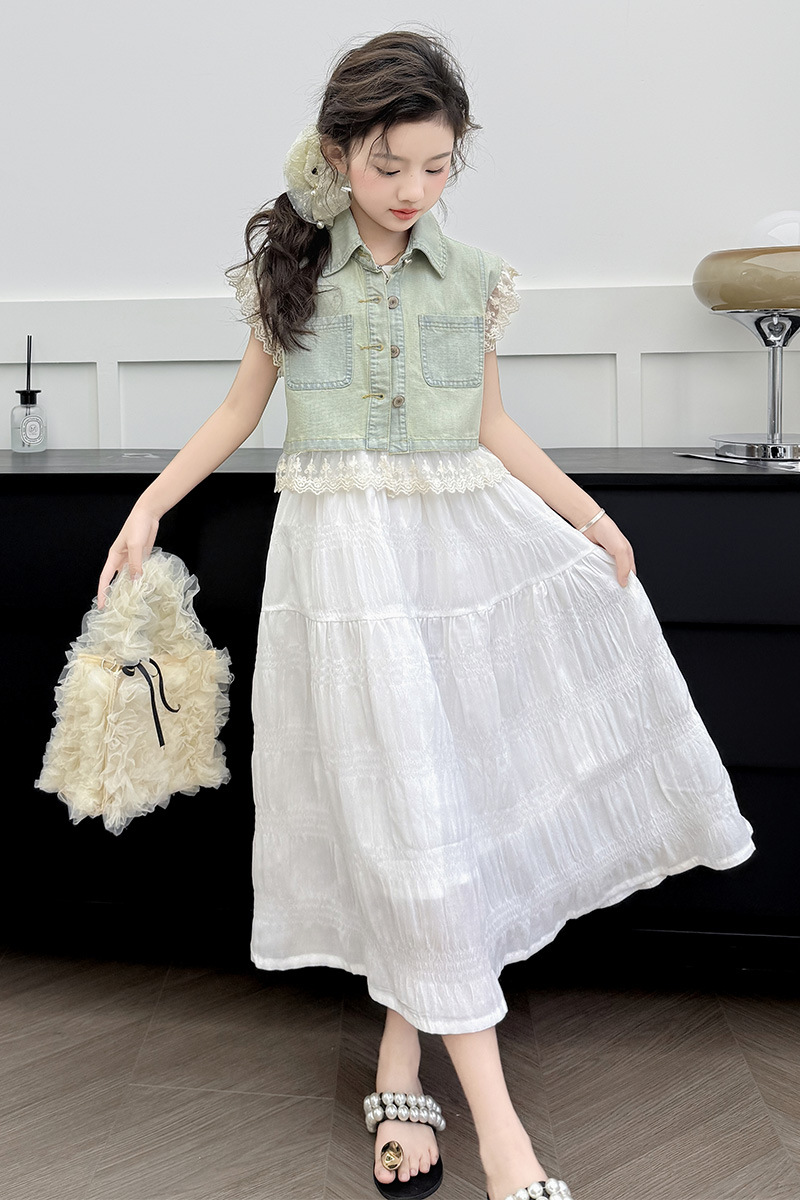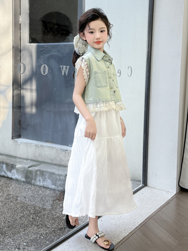 국경 간 소녀 여름 원피스 2025 새로운 어린이 여름 서양식 소녀 레이스 데님 조끼