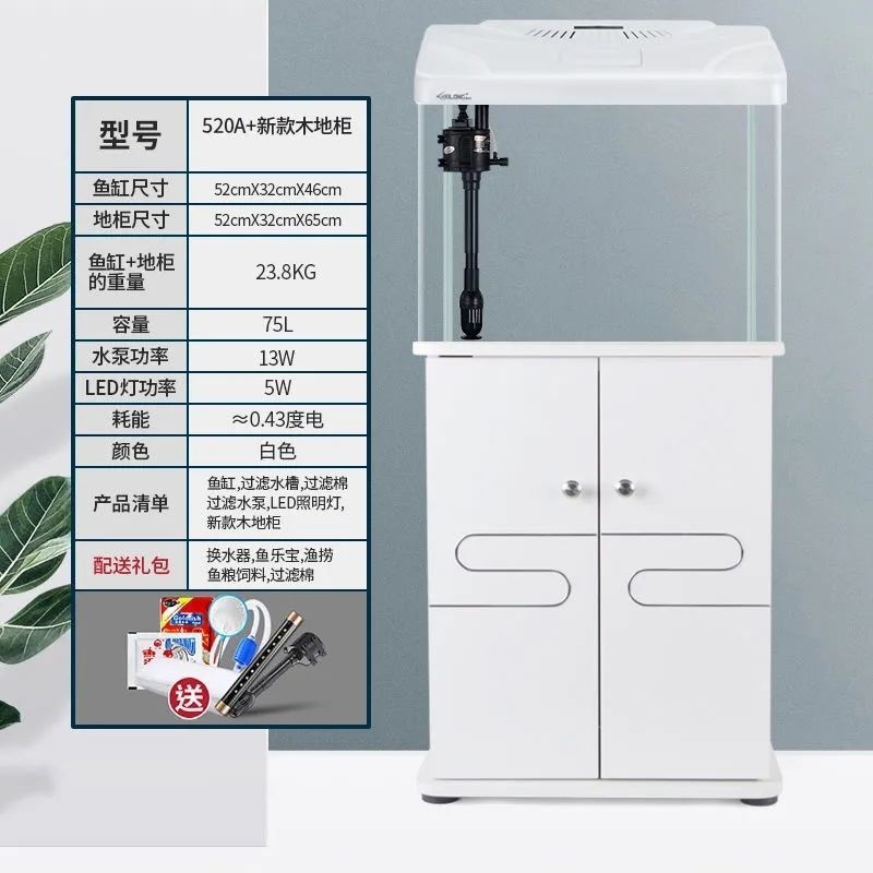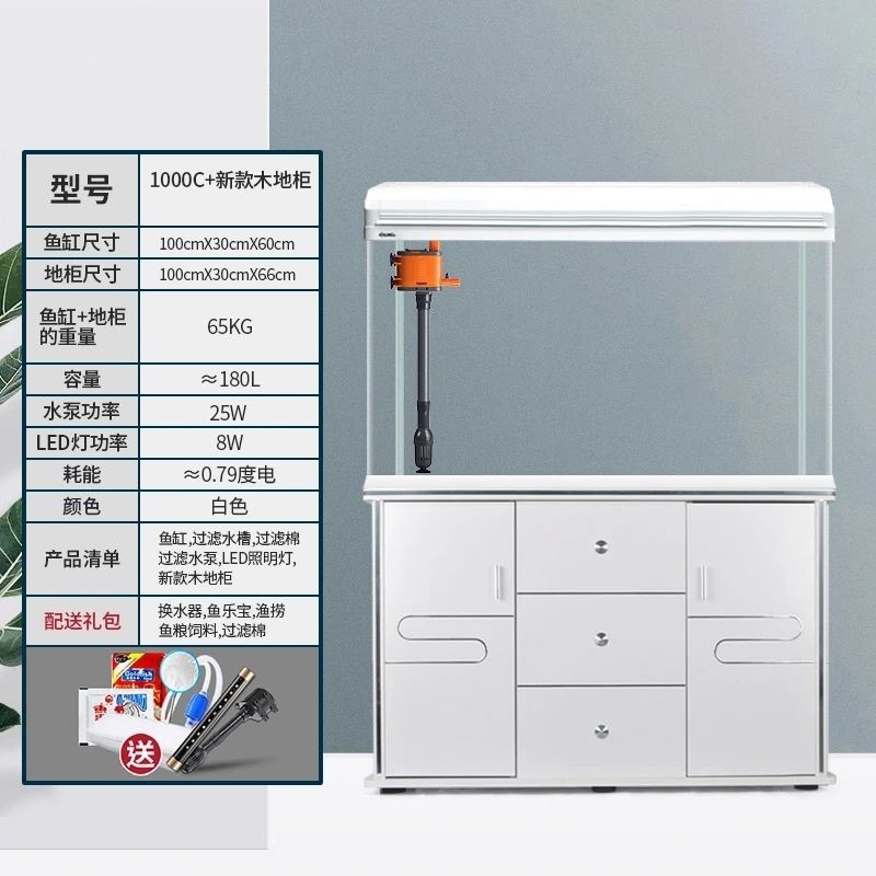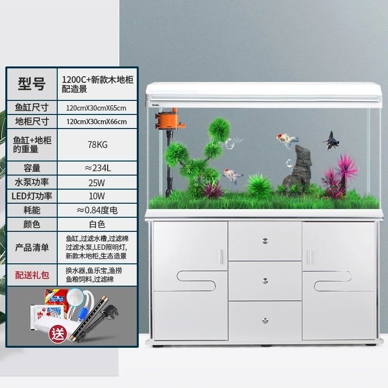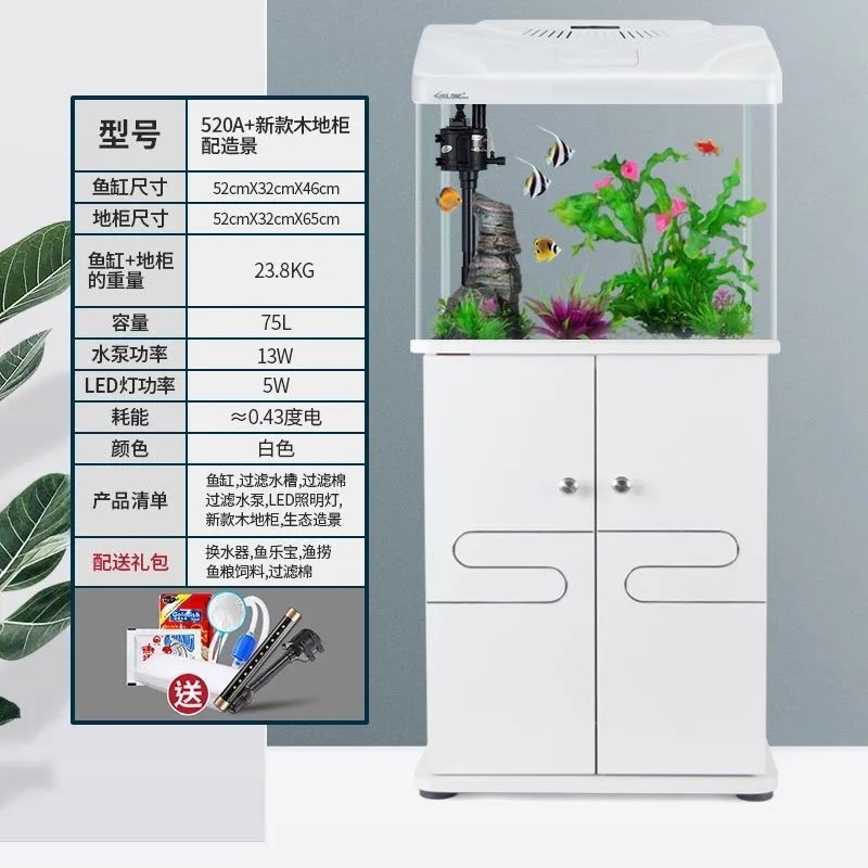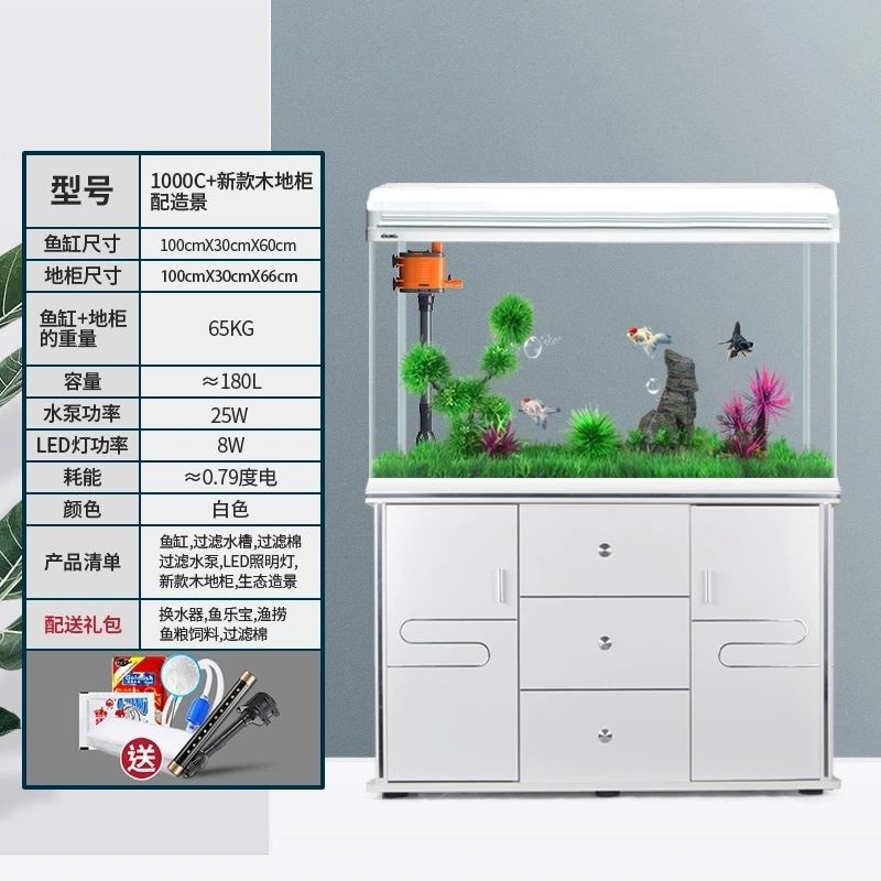 수조, 거실 수족관, 대형, 중형 및 소형 가정용 게으른 사람들을 위한 바닥 캐비닛이 있는 물을 갈아 주지 않는 유리, 생태학적 바닥에 있는 금붕어 수조스토어 가기