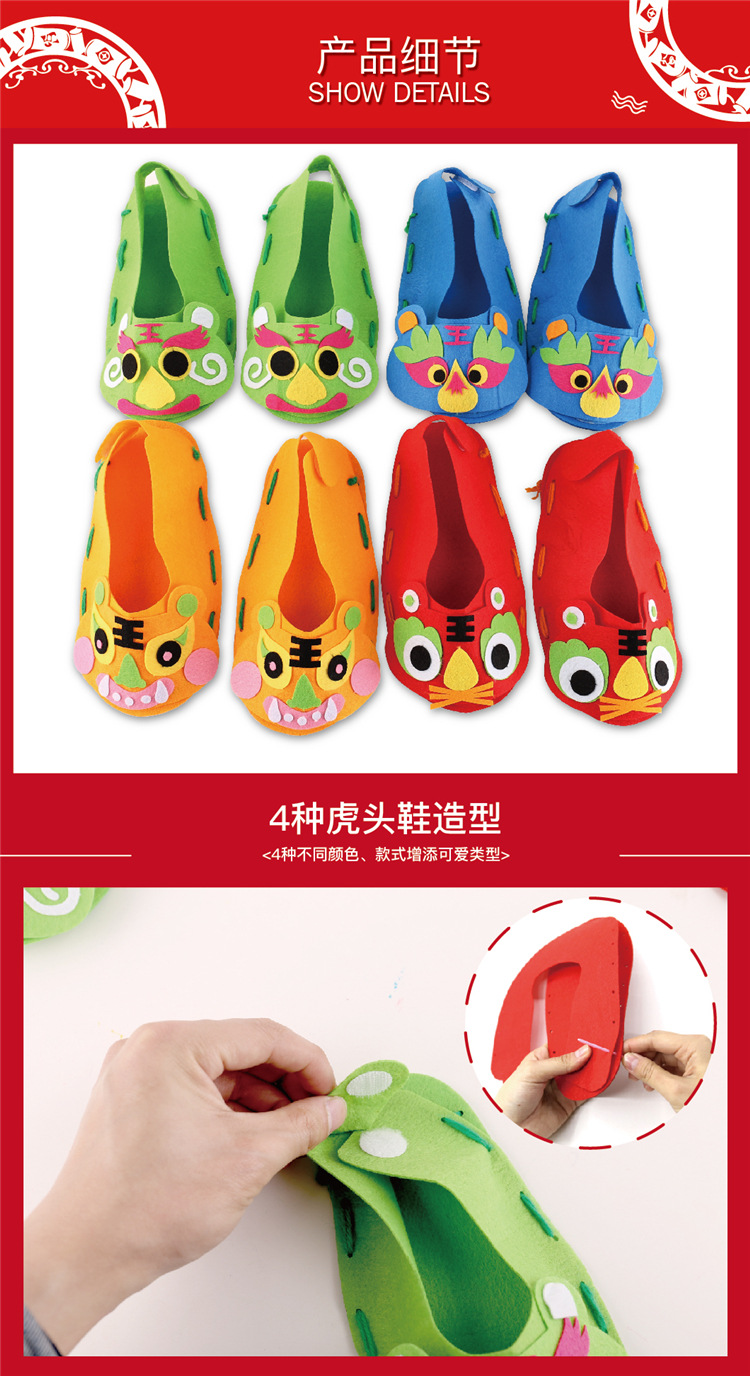 단오절 패브릭 신발 가방 수제 호랑이 머리 신발 수제 어린이 선물 재료 diy 크리 에이 티브 유치원