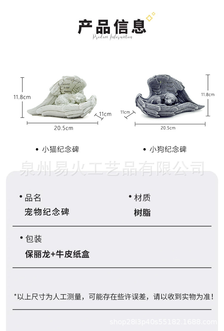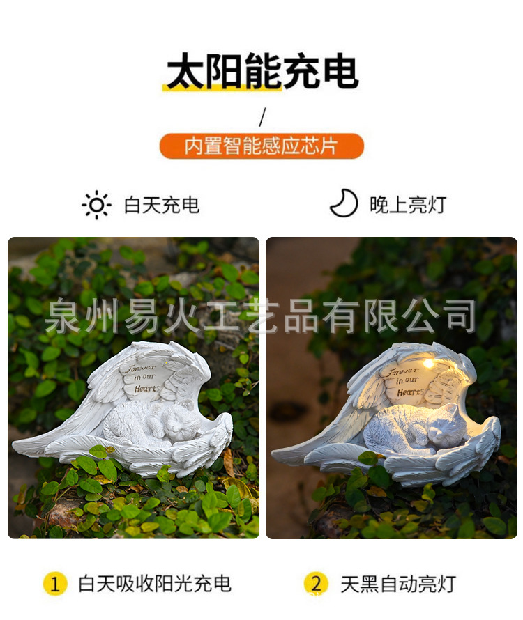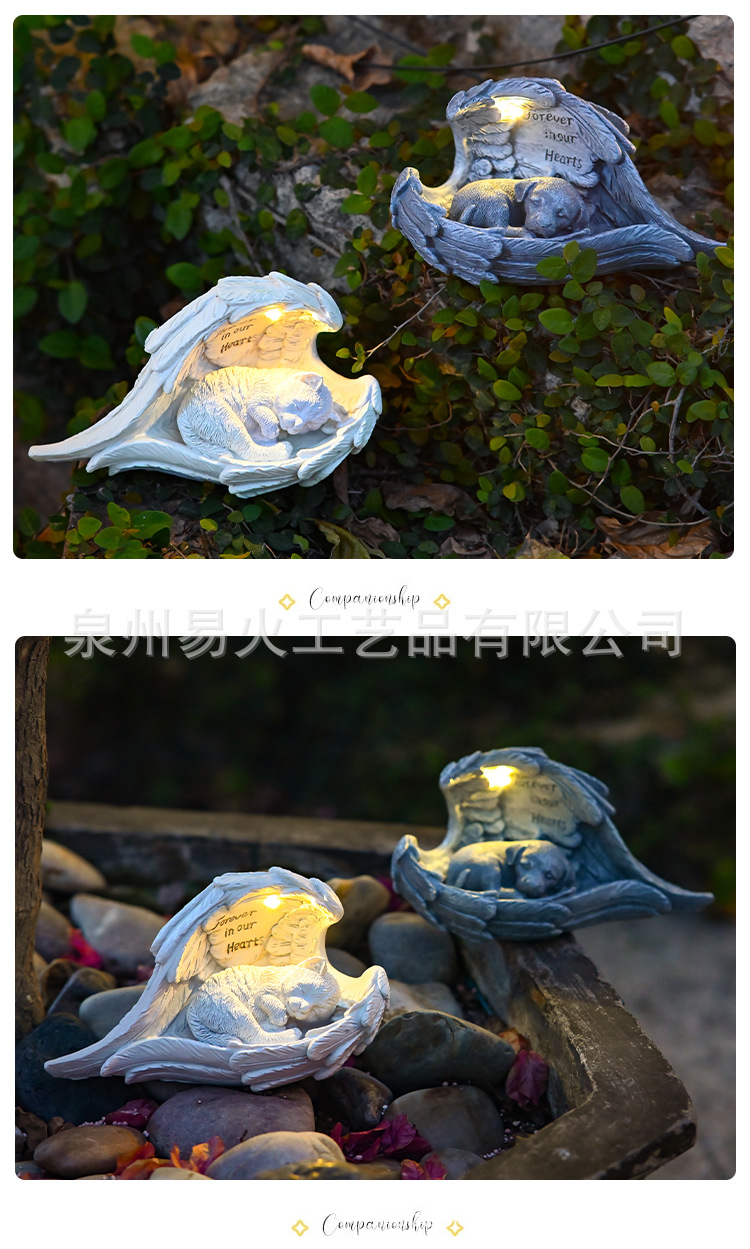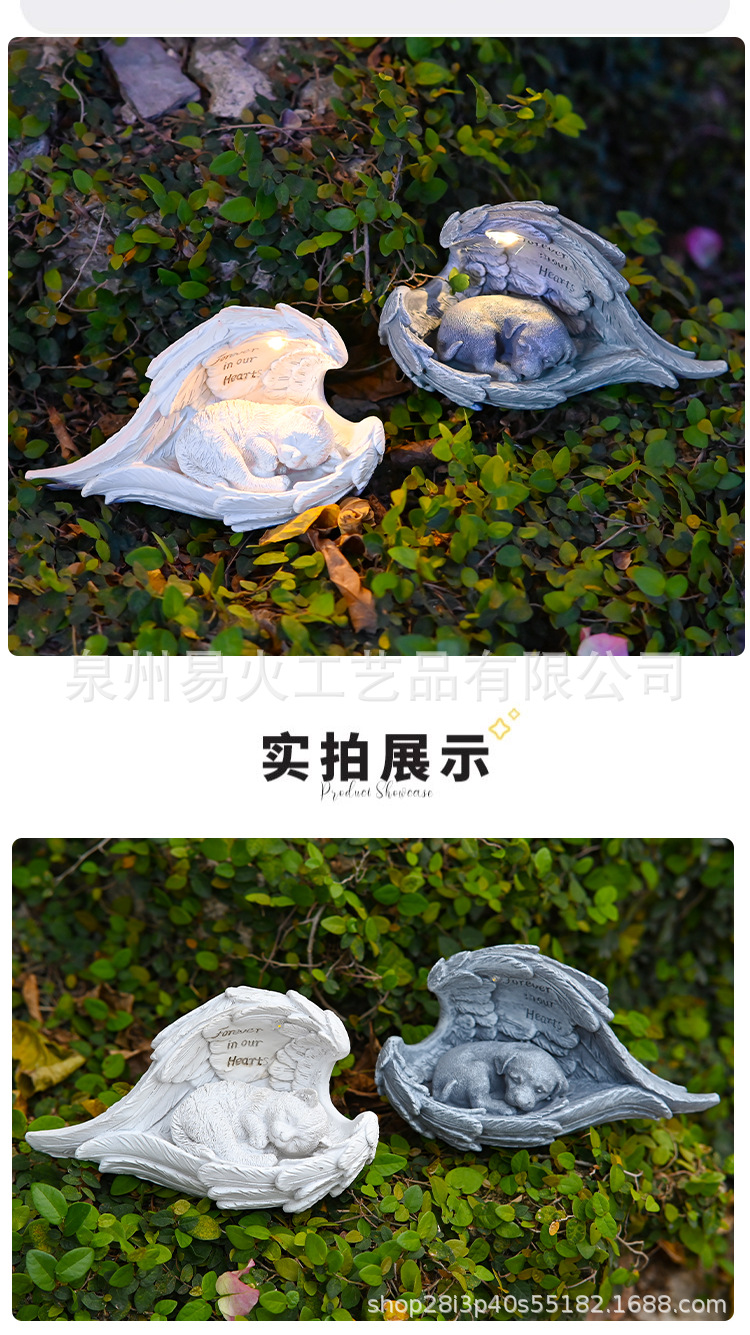 국경을 넘는 창조적 인 천사 개와 고양이 장식품 수지 애완 동물 기념 묘비 안뜰 묘지 고양이와 개 애완 동물 기념품