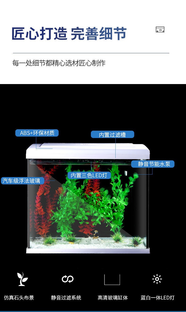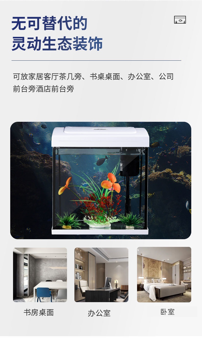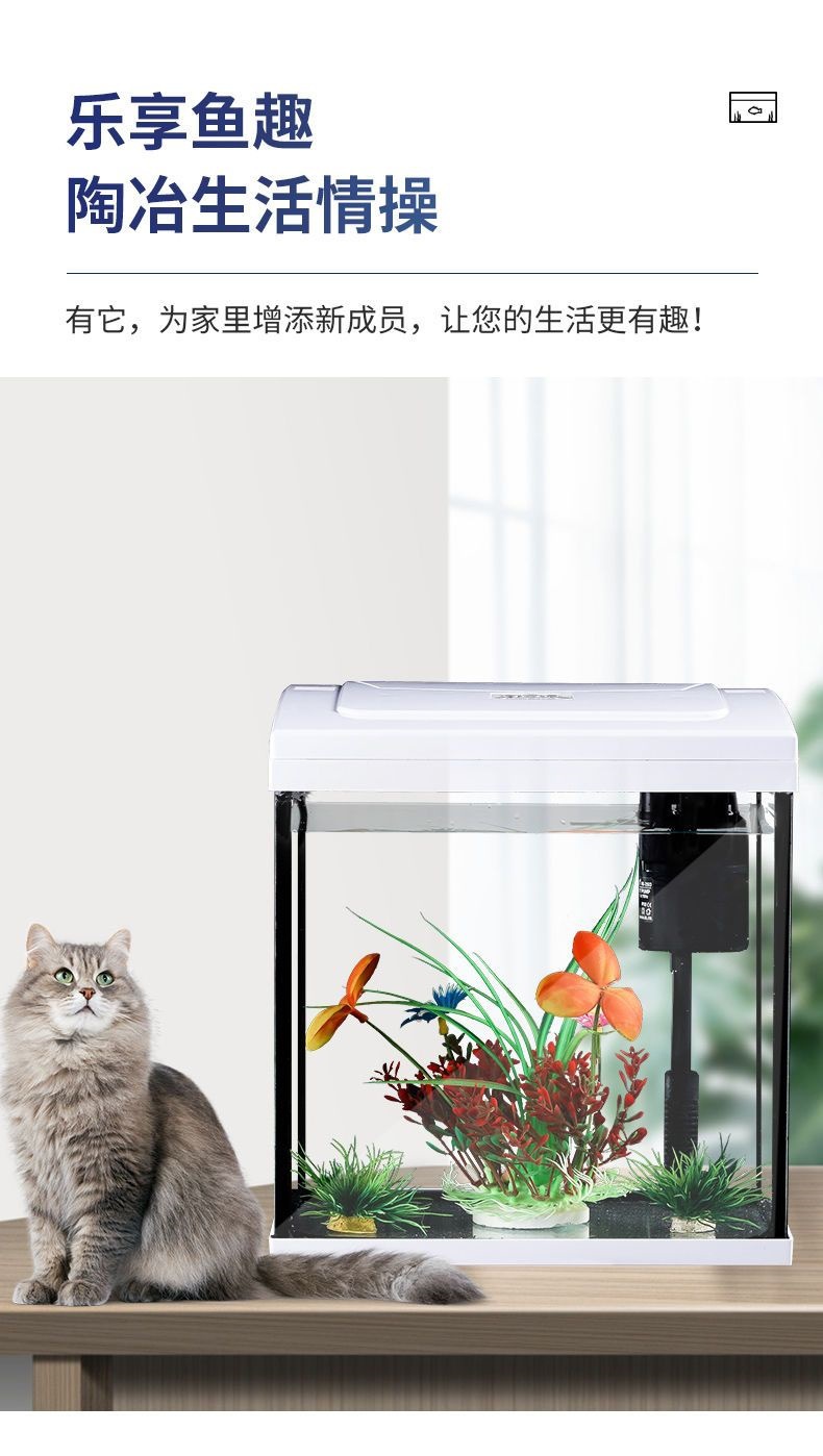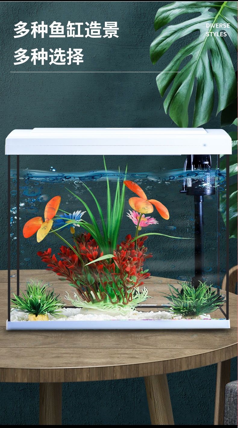물고기 탱크 거실 가정용 게으른 물없는 데스크탑 유리 중소 규모의 조경 수족관 생태 창조적 인 금붕어 탱크스토어 가기