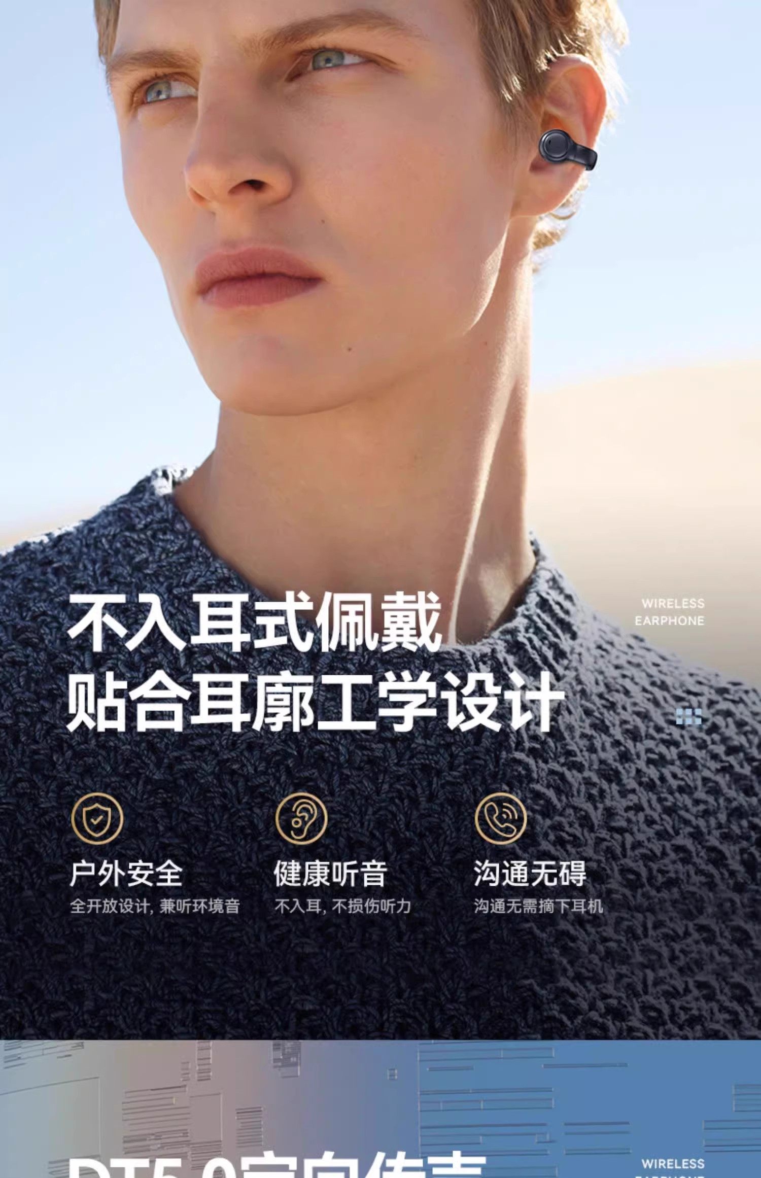 인기 골전도 무선 블루투스 이어폰, 귀에 꽂지 않는 클립형, 초장시간 배터리, 스포츠용, 게이밍용, 저지연스토어 가기