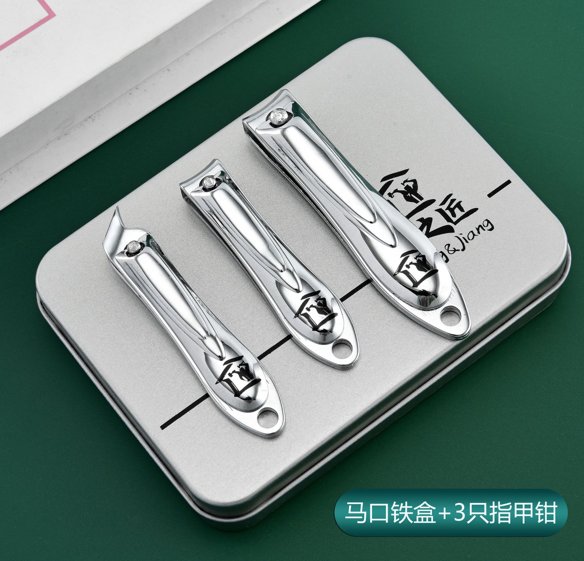 휴대용 깡통 상자 3피스 손톱깎이 세트 손톱깎이 도구 안티 스플래시 대형 경사 손톱깎이 세트