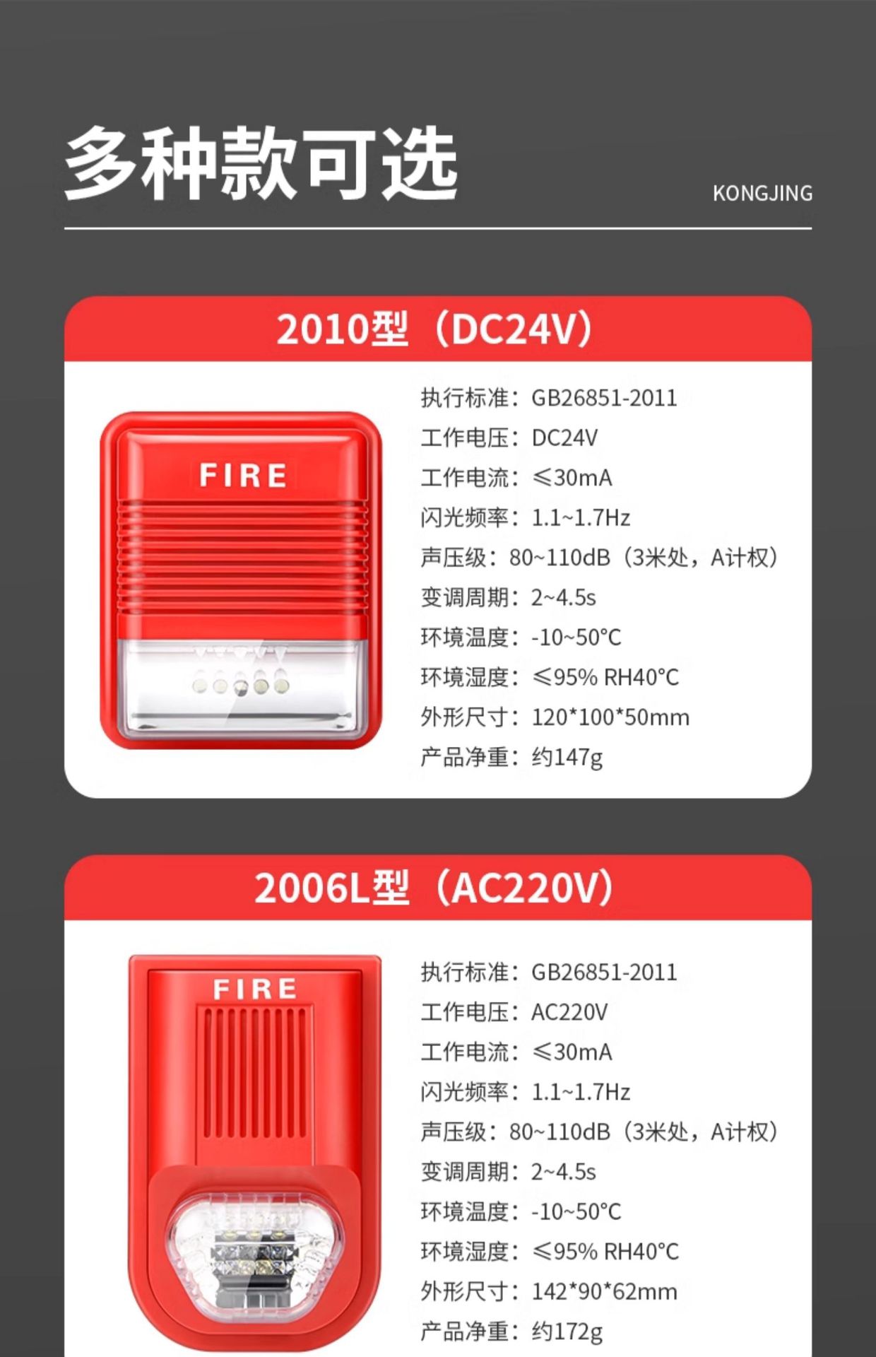 화재 소리 및 빛 경보 24V 비인코딩 화재 경보 벨 수동 경보 깜박임 통합 경고등 220V스토어 가기