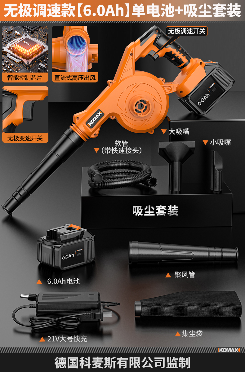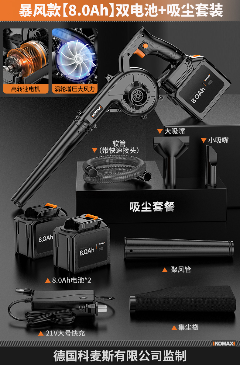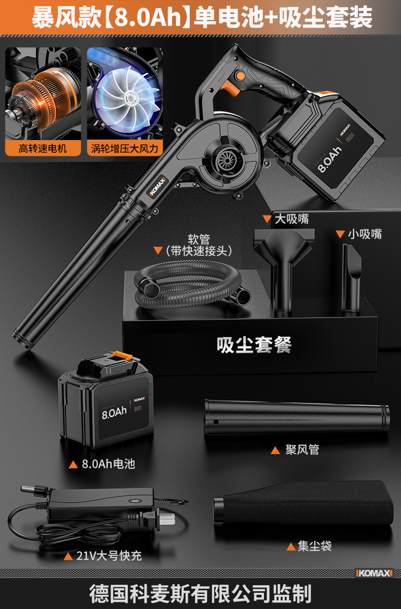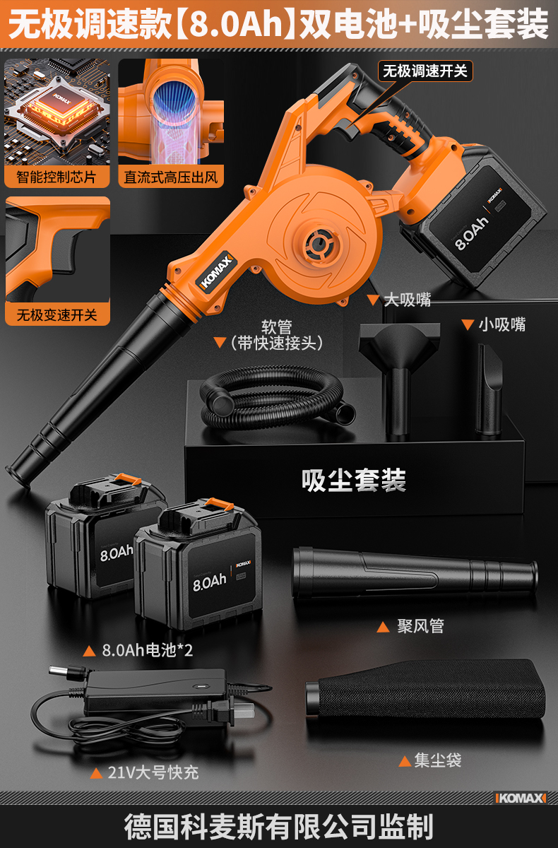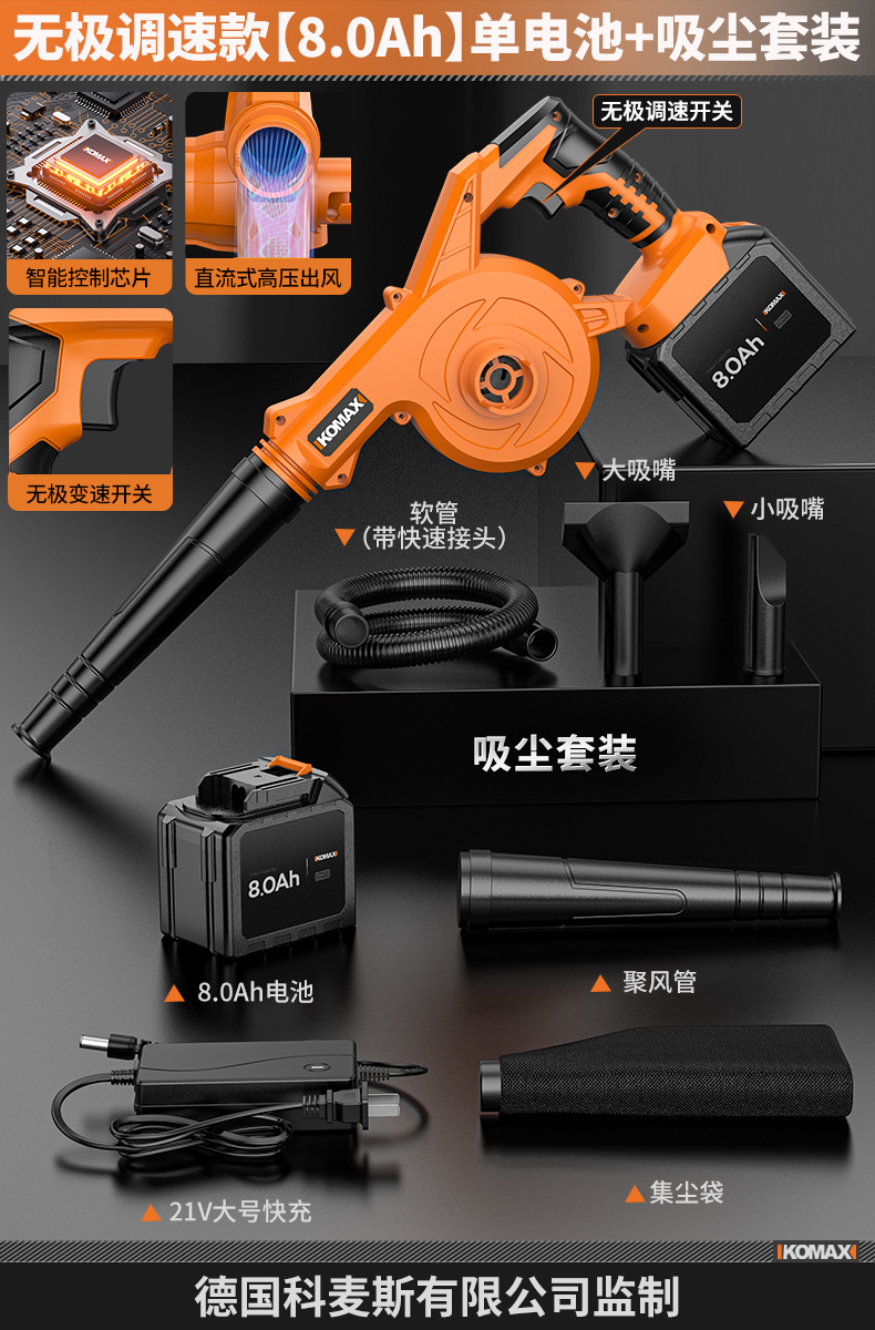 • 무단계 속도 조절 모델 [8.0Ah] 단일 배터리 + 진공 세트